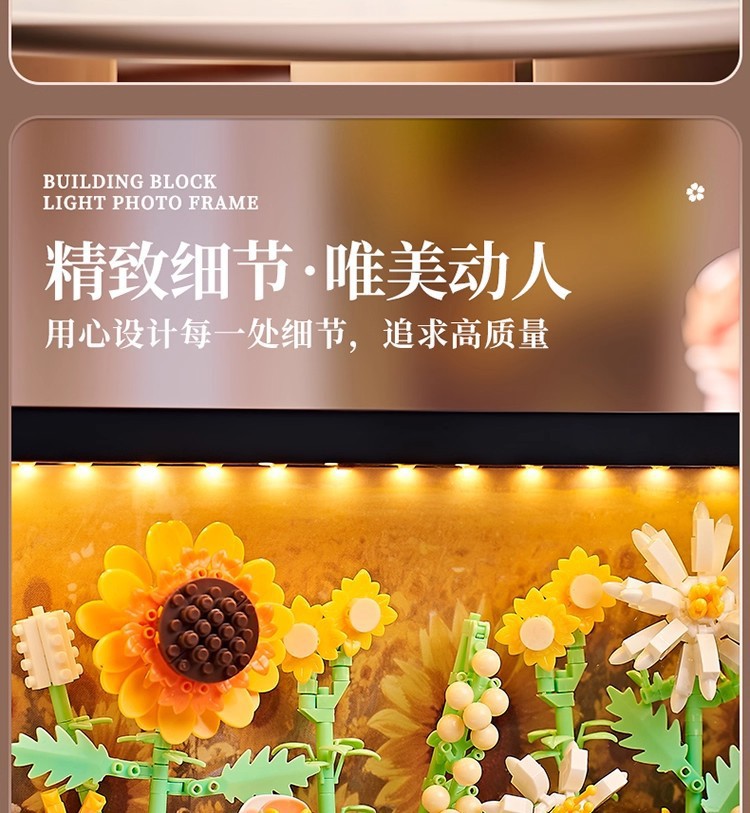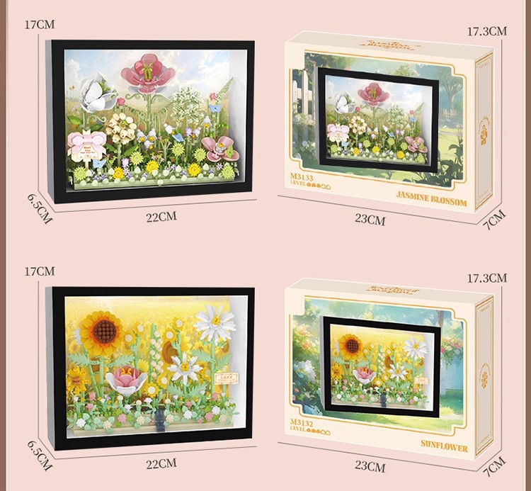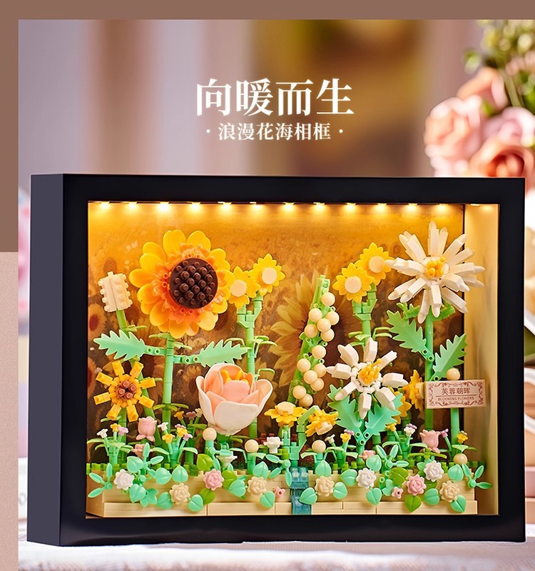 积慧微颗粒积木玩具手工diy拼装M3130花朵相框永生花礼物摆件跨境