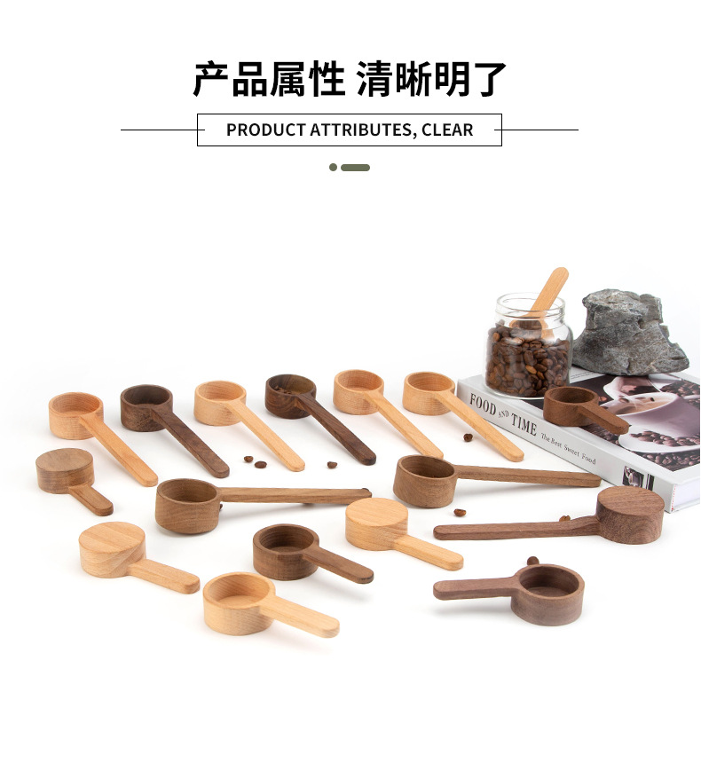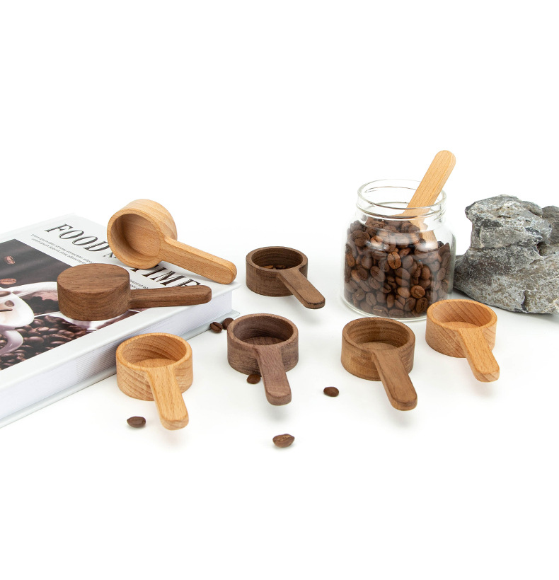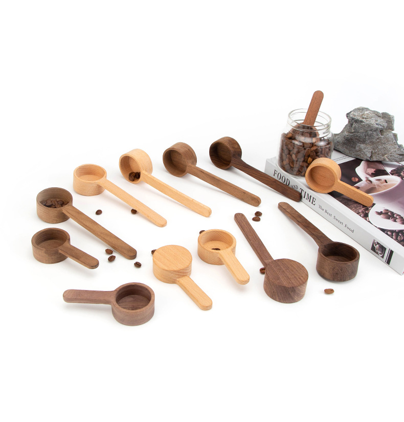 ケヤキ計量スプーン10 15 30 45ml欧米木スプーン黒胡桃木コーヒー豆スプーン8g粉計量スプーン