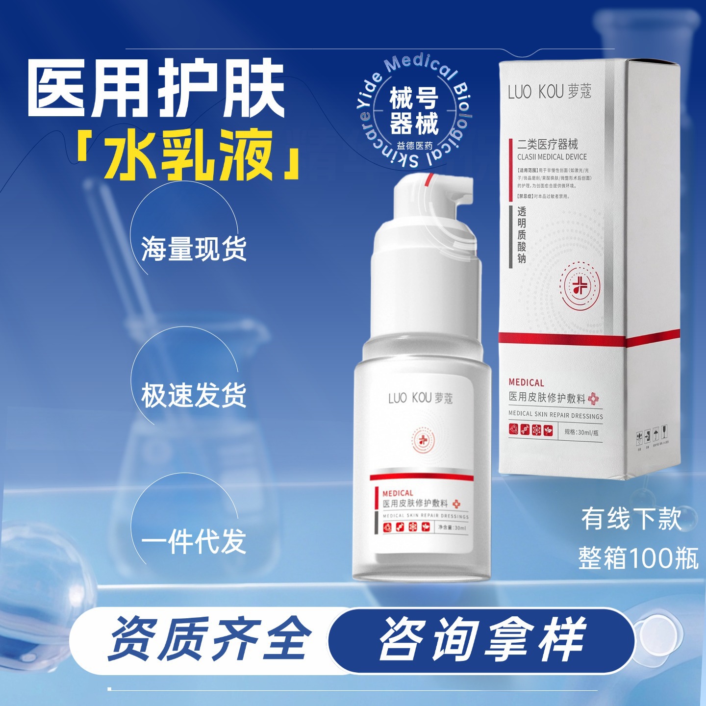 水乳液械字号精华乳保湿 医用皮肤修护敷料术后修护乳液医用水乳