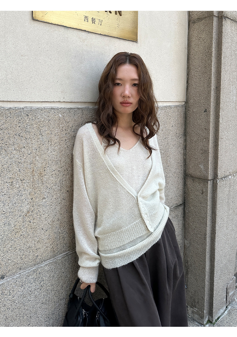 THE MIND针织罩衫+小吊带两件套2025秋季新款慵懒风上衣女T5320Q