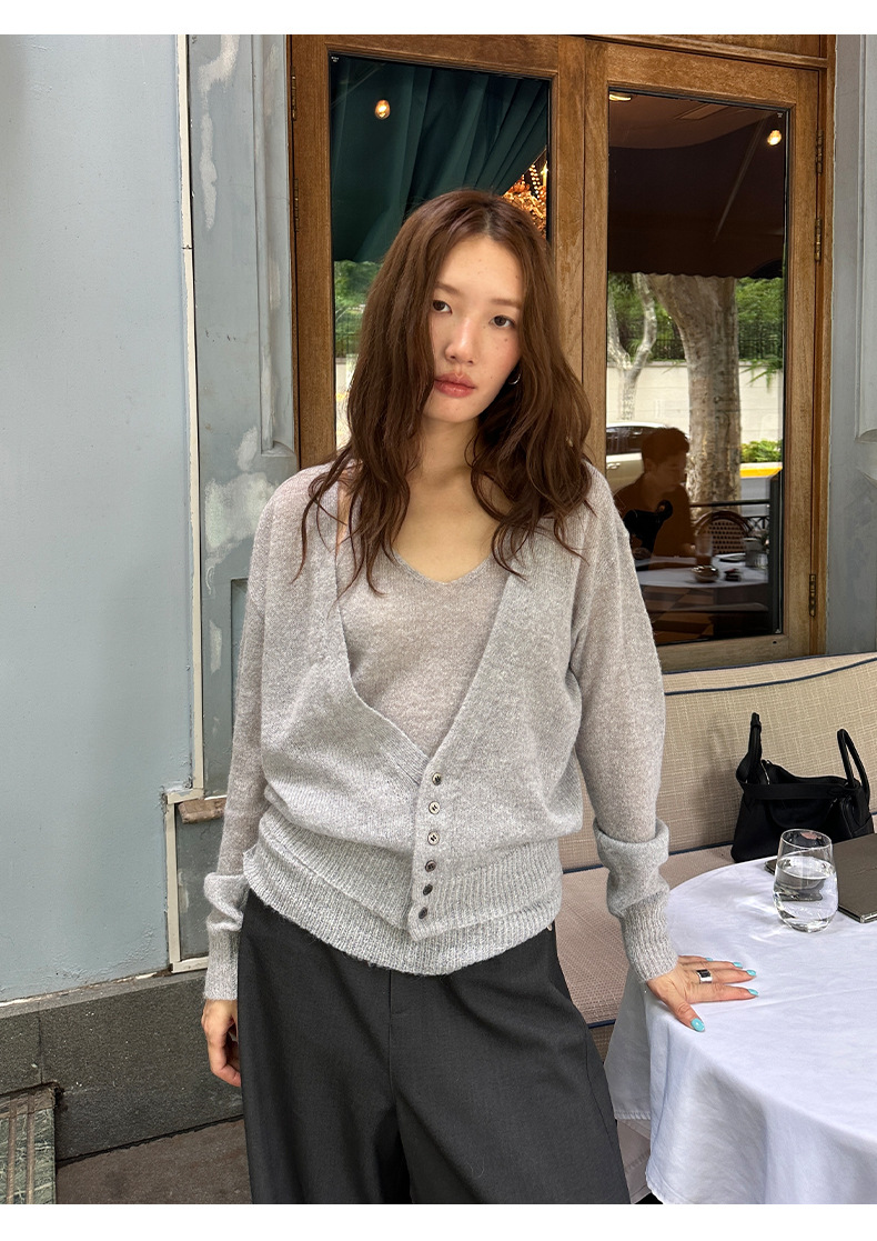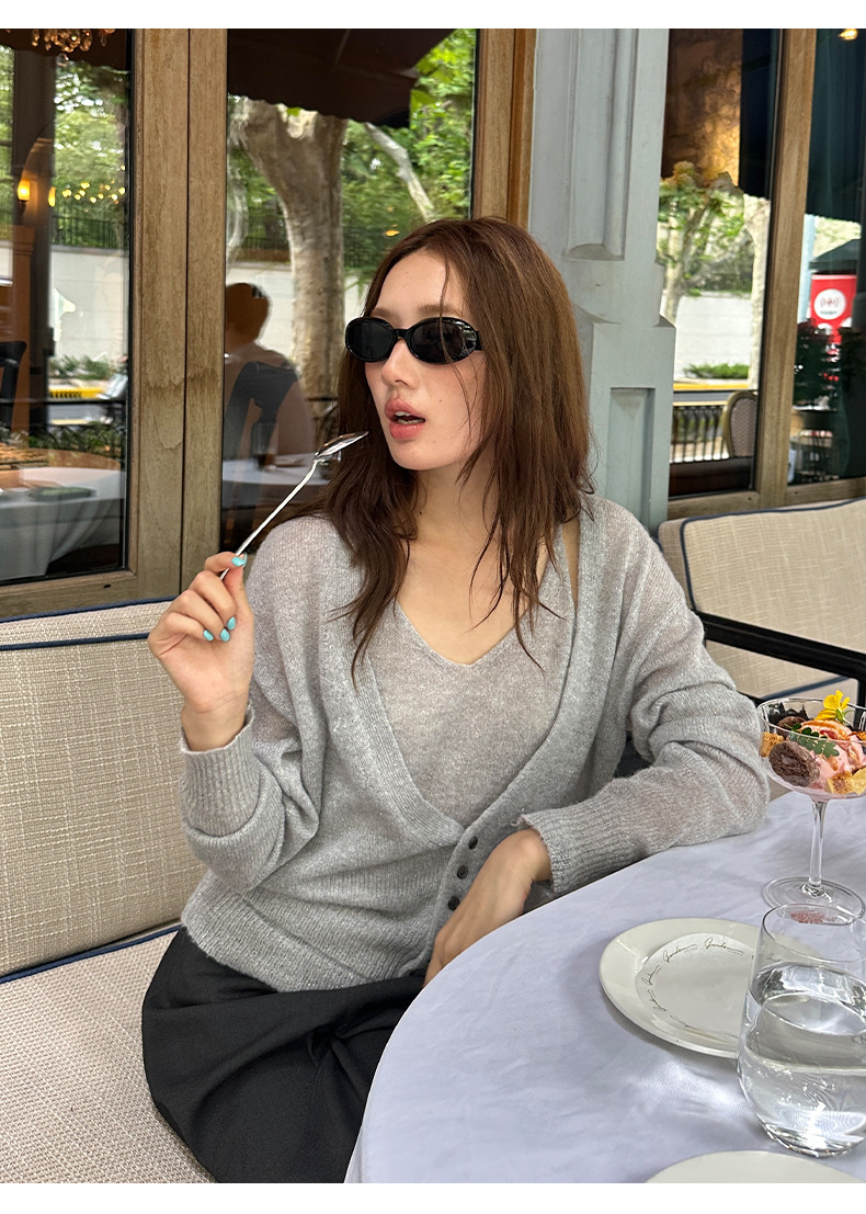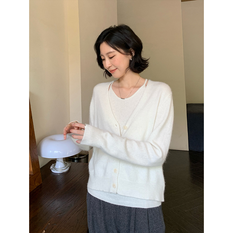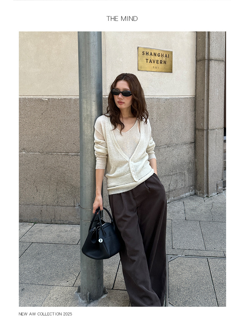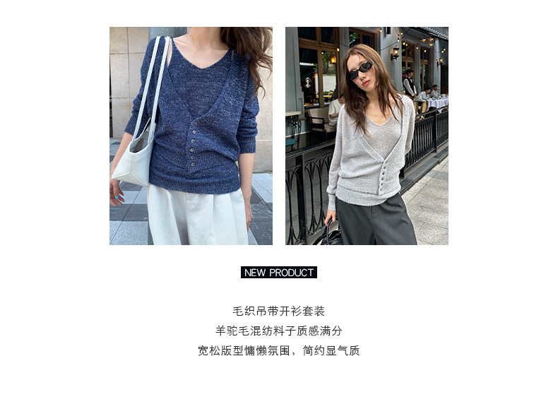 THE MIND羊驼毛小吊带+开衫毛衣两件套2025秋新款时髦针织衫T5387