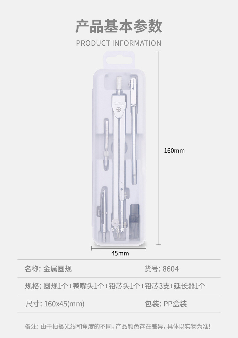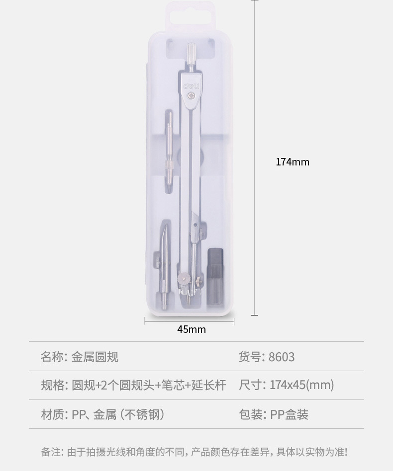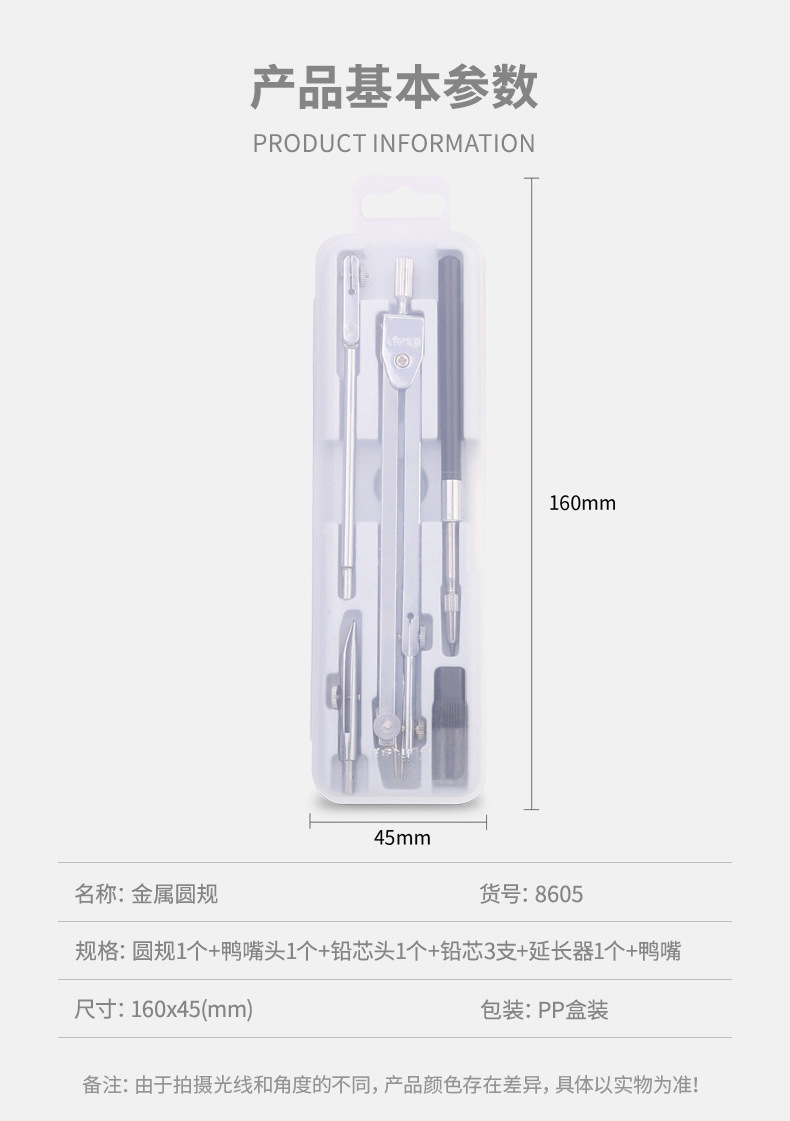 尺寸 8601圆规二件套,8603圆规四件套,8600圆规替芯