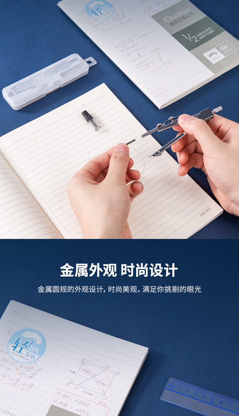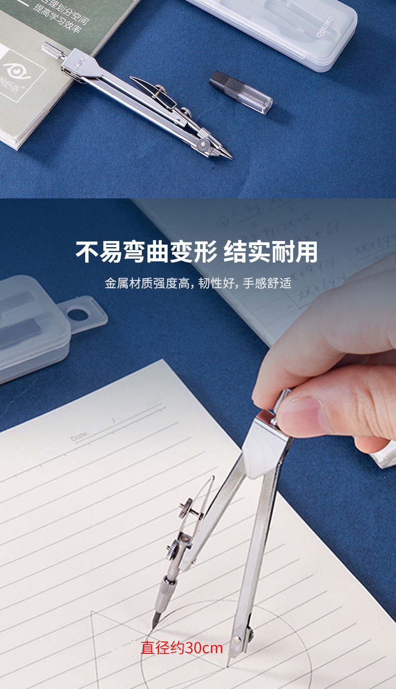 得力8601圆规套装学生考试工程技术圆规绘图设计金属质感制图仪器
