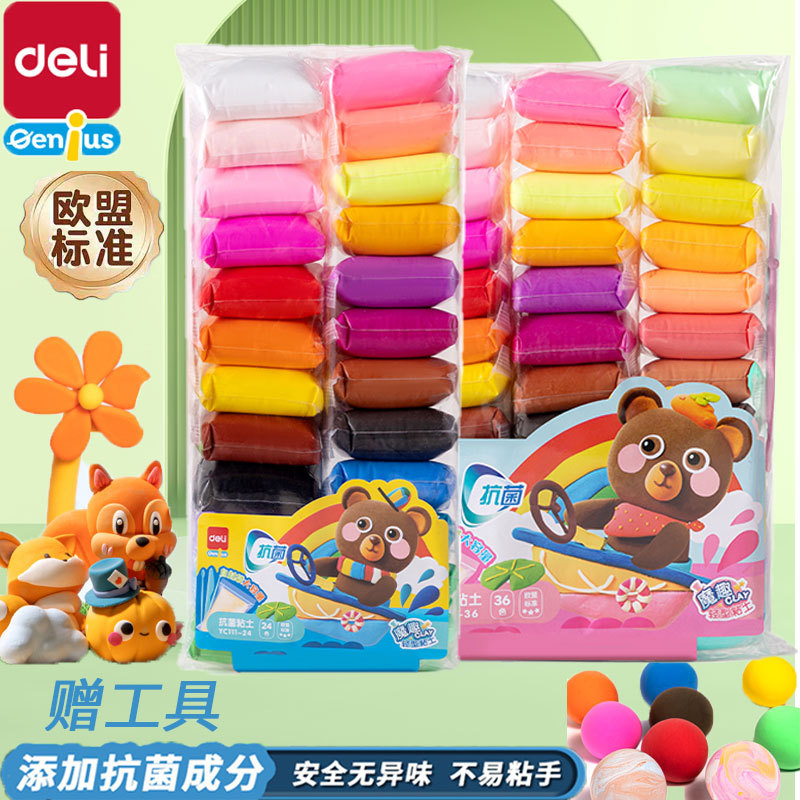 デリ超軽量粘土12色、自己密封袋入り、無臭、学生向け抗菌カラー粘土、手作りカラー、成形しやすい超軽量粘土