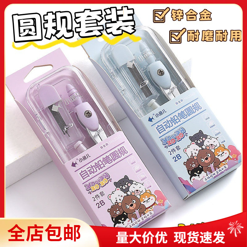 包郵便小魚2362学生絵画定規2点セット萌え潮2b自動鉛筆コンパス2点セット