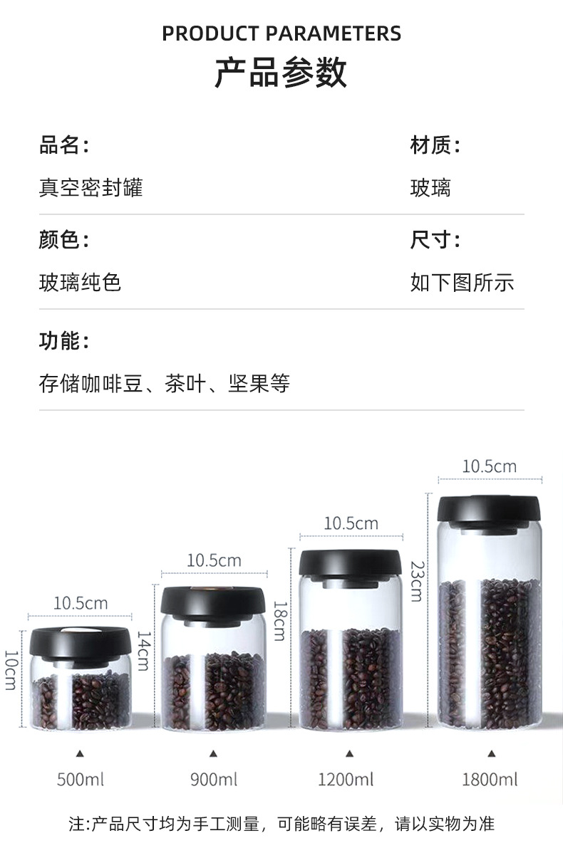 咖啡豆保存罐食品级玻璃瓶储物罐子五谷杂粮收纳瓶子抽真空密封罐