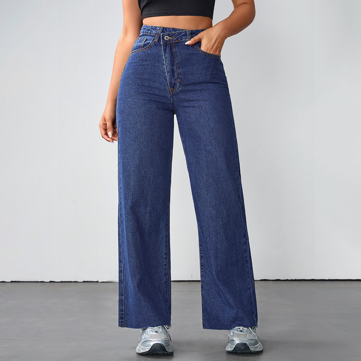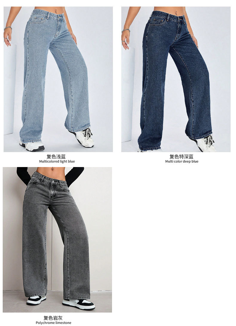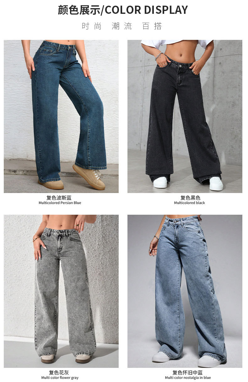 2023新型クロスボーダー女性カジュアルジーンズゆるいハイウエスト広脚長ズボン街頭カウボーイ直筒長ズボン