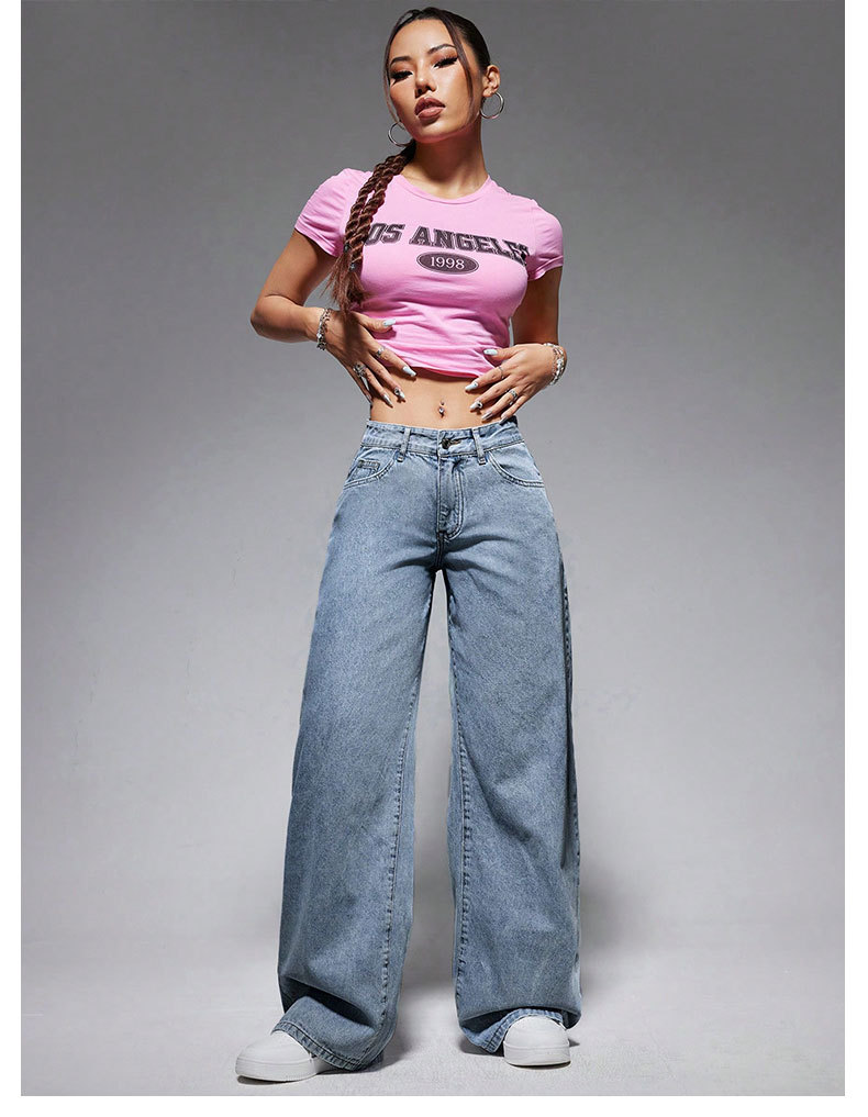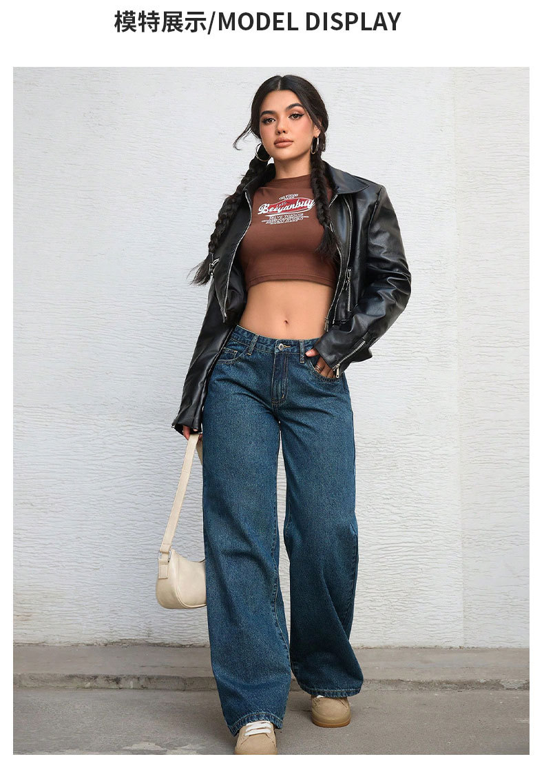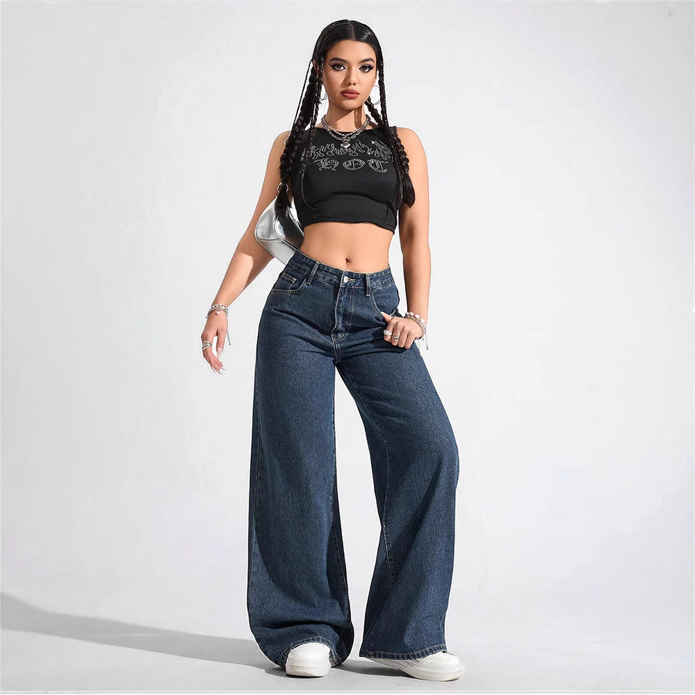 欧美跨境新款高腰显瘦宽松拖地喇叭直筒裤潮流休闲牛仔裤女潮牌