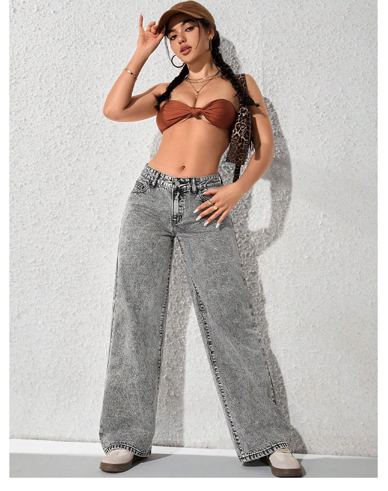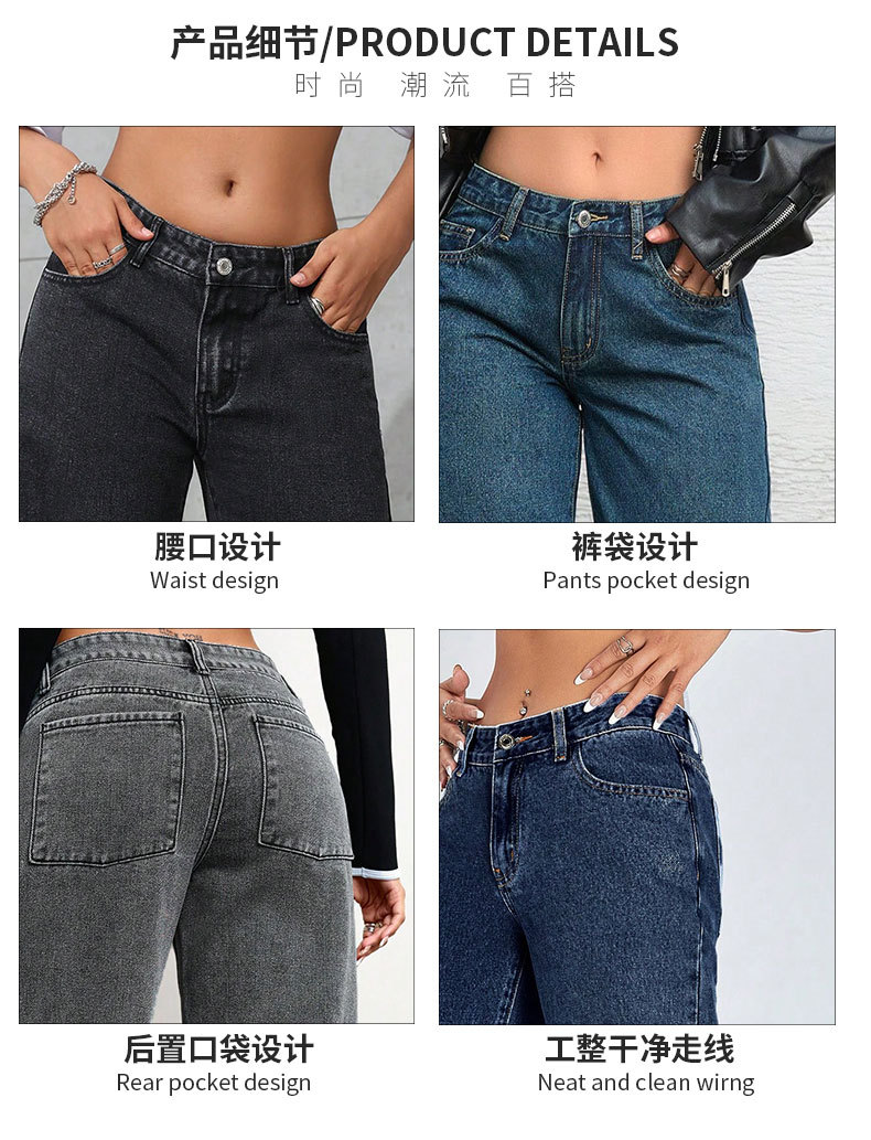 跨境外贸独立站欧美爆款高腰牛仔裤时尚直筒裤牛仔裤子女性裤女装