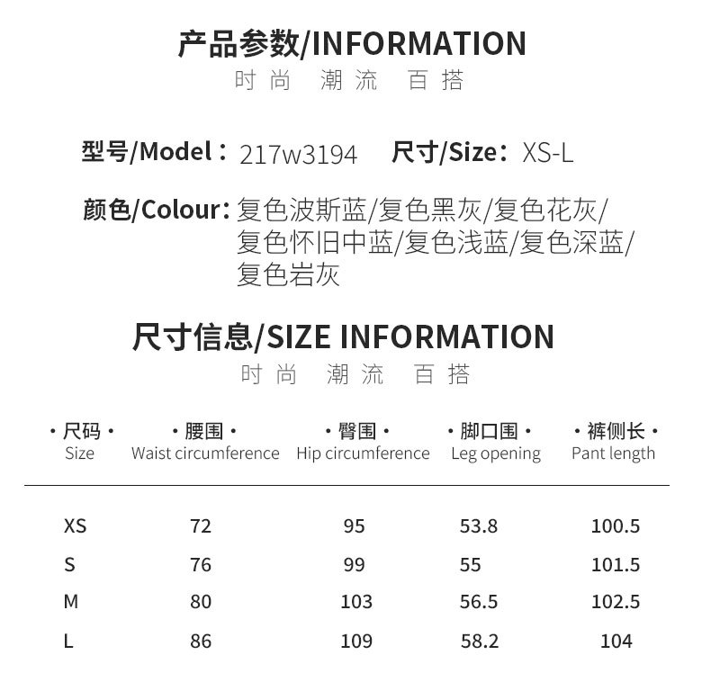 颜色 波斯蓝,黑灰,花灰,浅蓝白,特深蓝,岩灰,漆黑,怀旧中蓝,浅蓝,中灰,正青,晴蓝