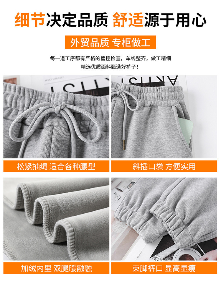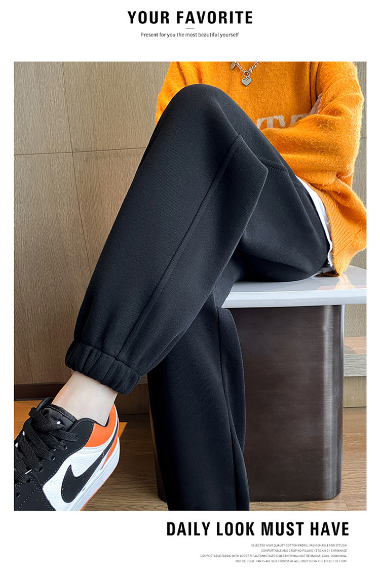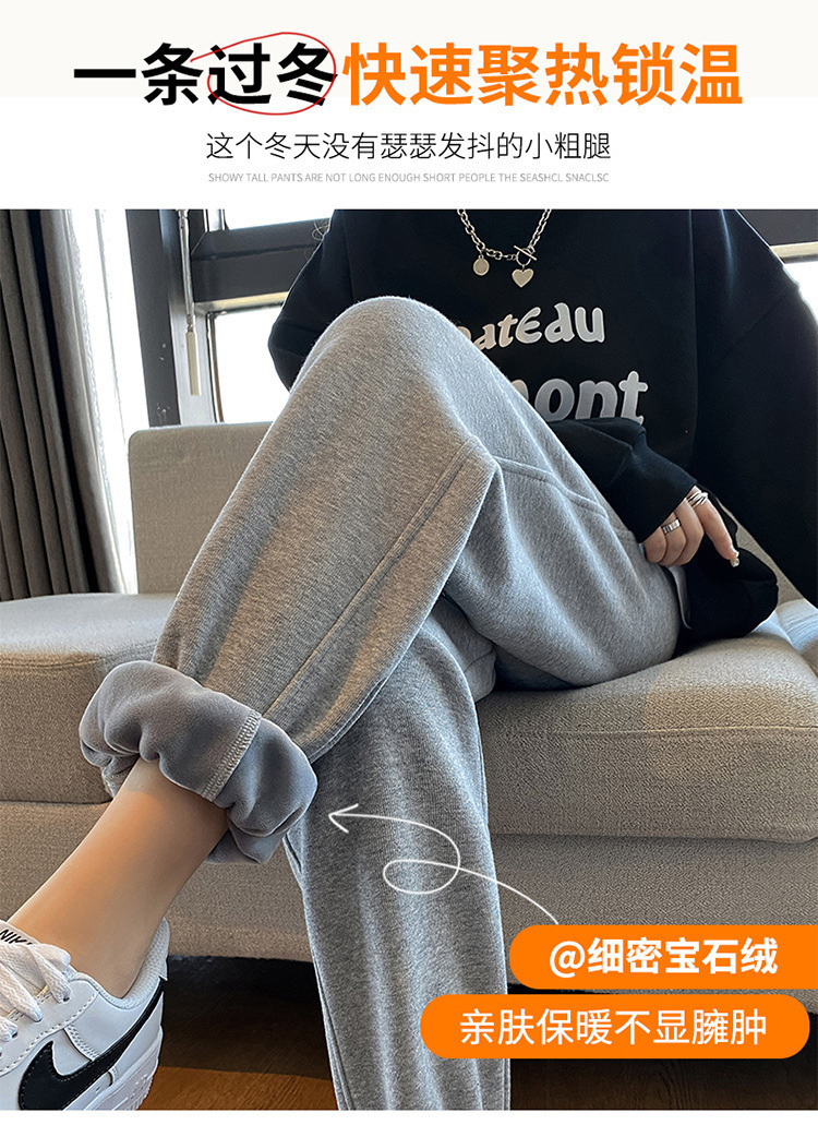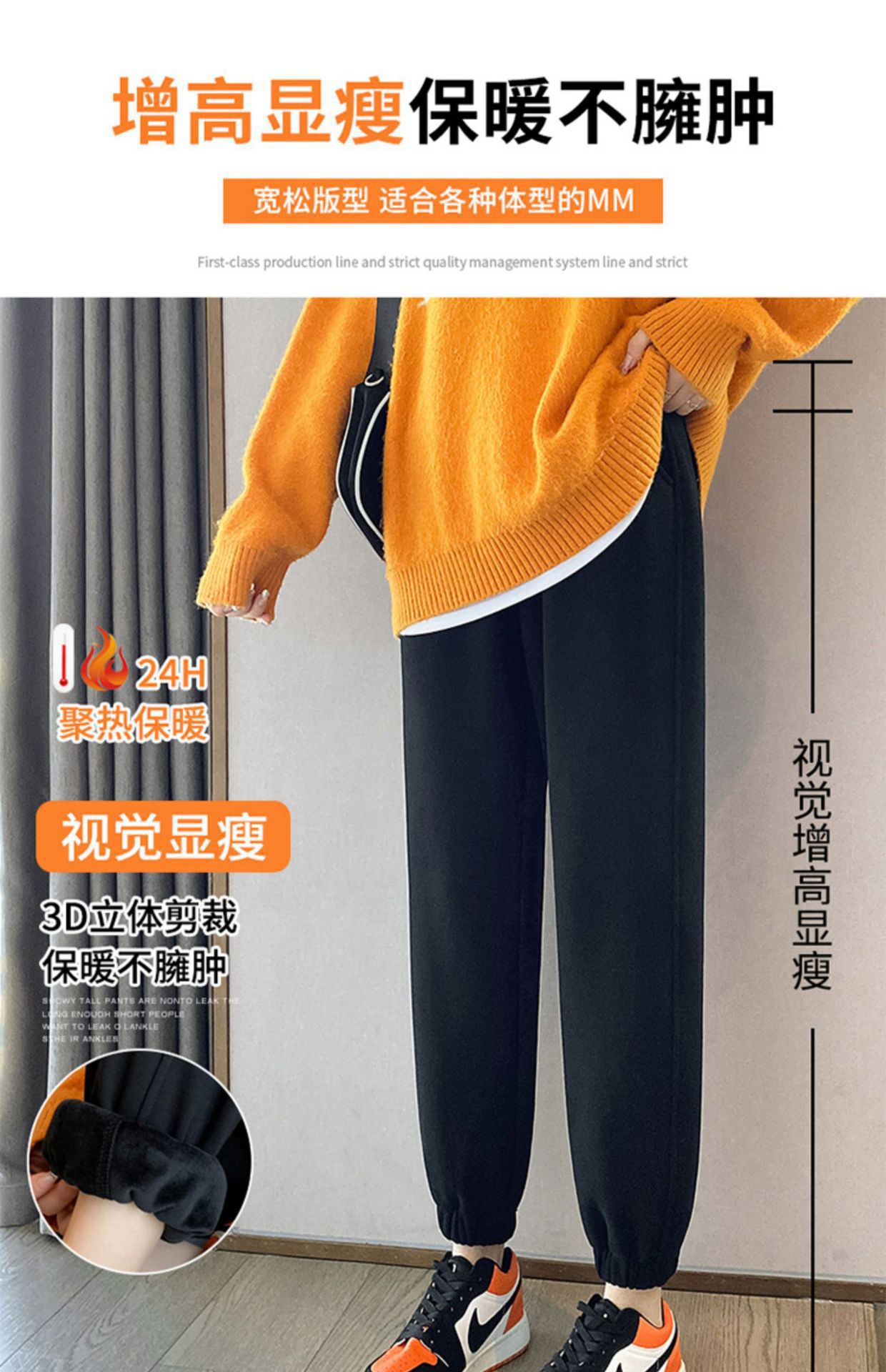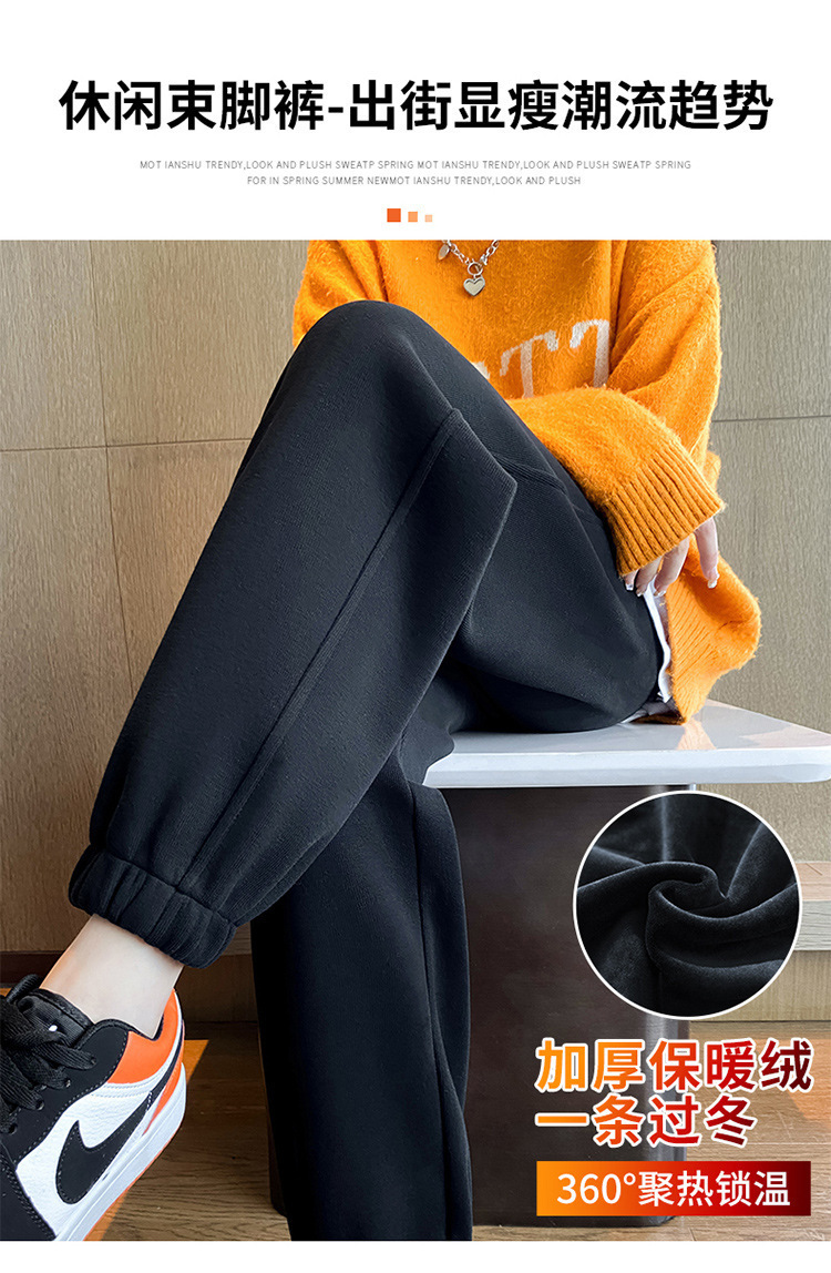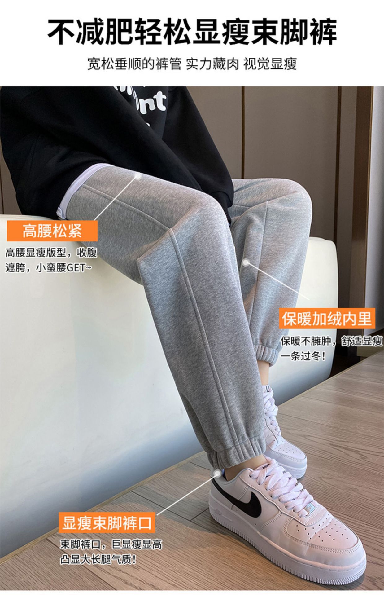 梨形身材大码200斤黑色束脚运动裤女秋冬加绒显瘦胖mm休闲卫裤子