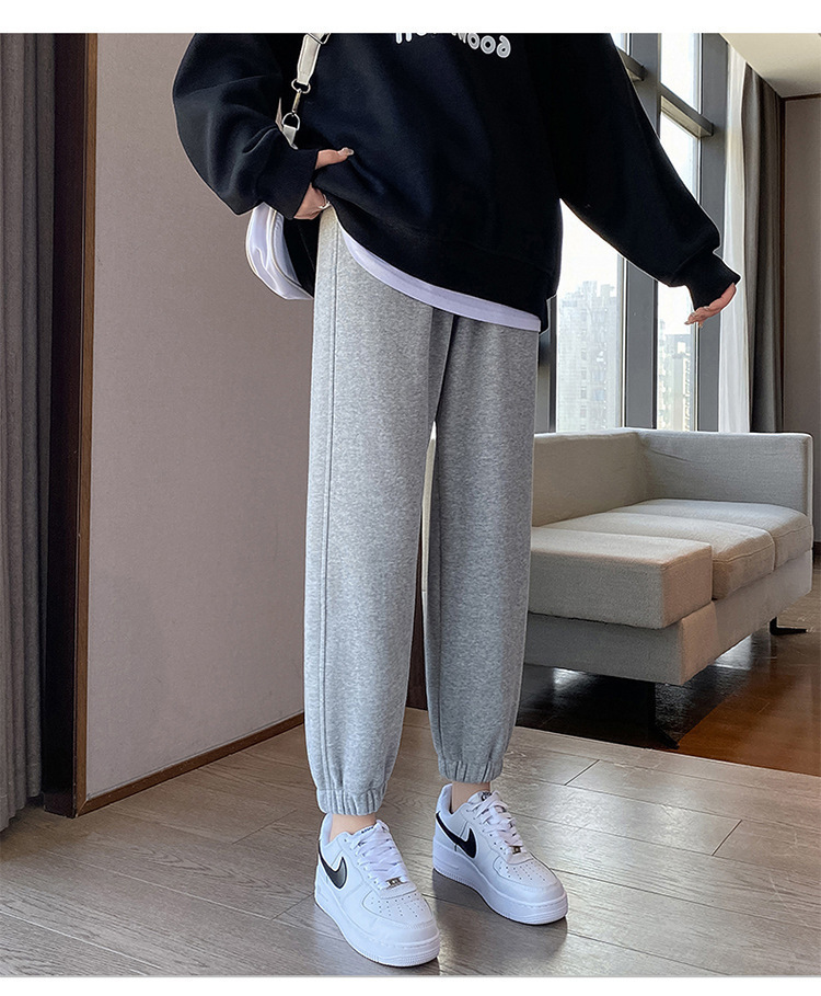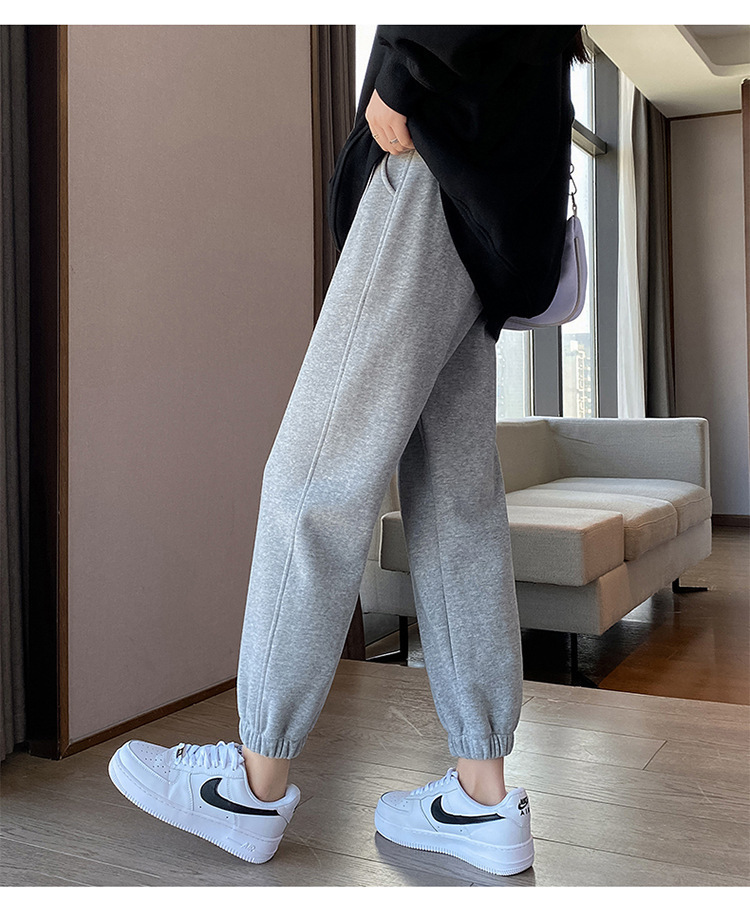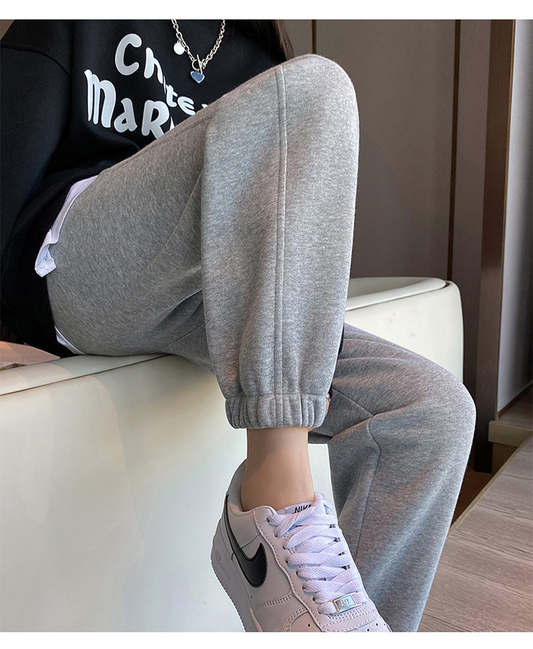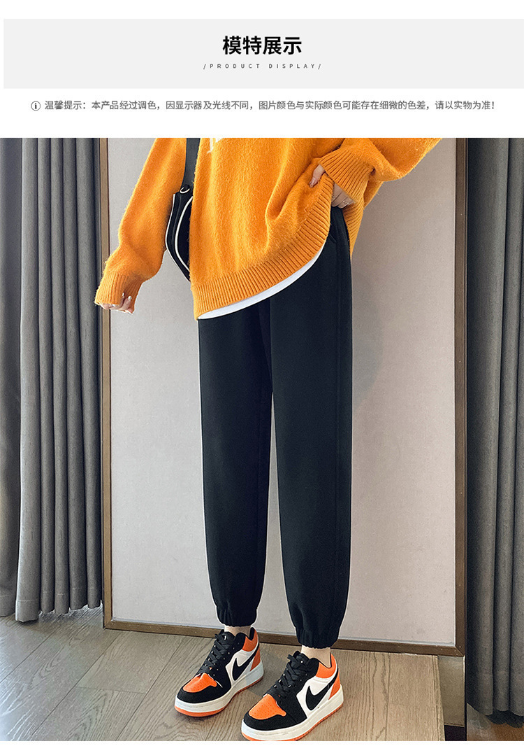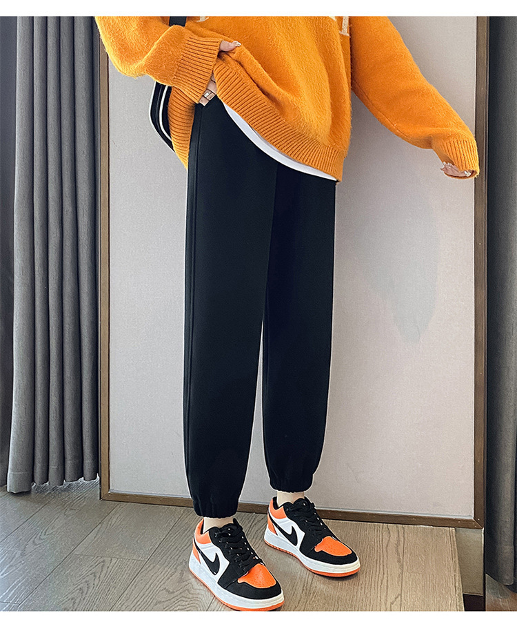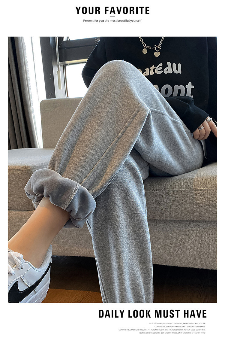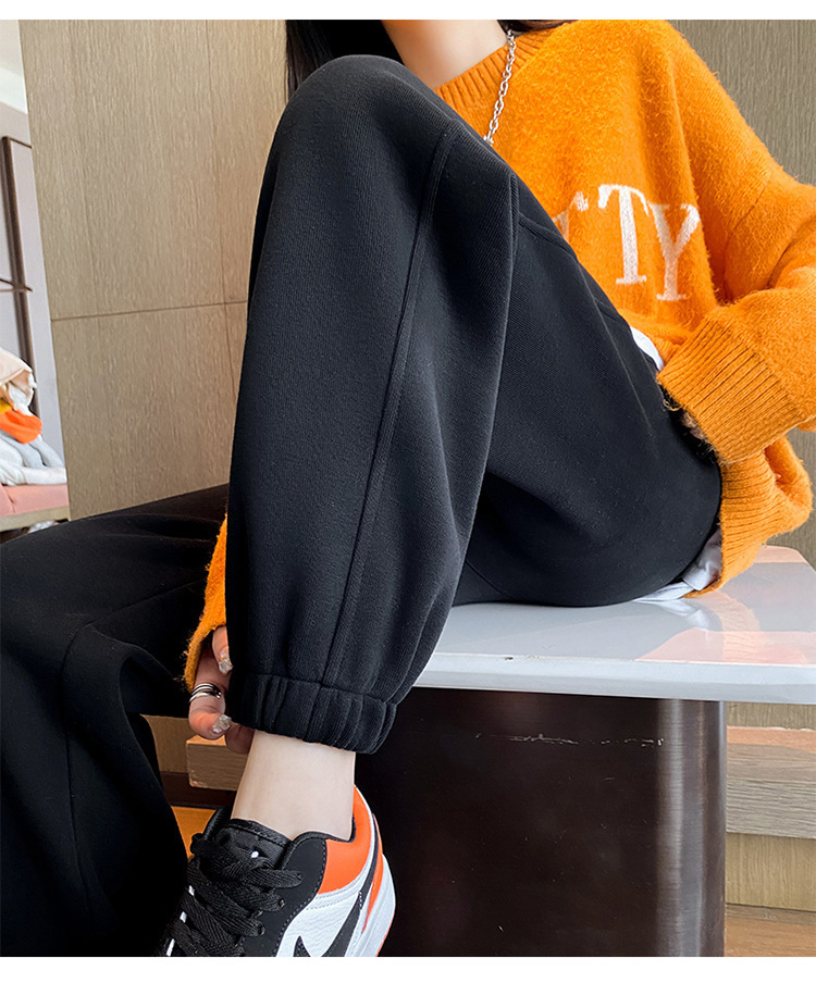 梨形身材大码200斤黑色束脚运动裤女秋冬加绒显瘦胖mm休闲卫裤子