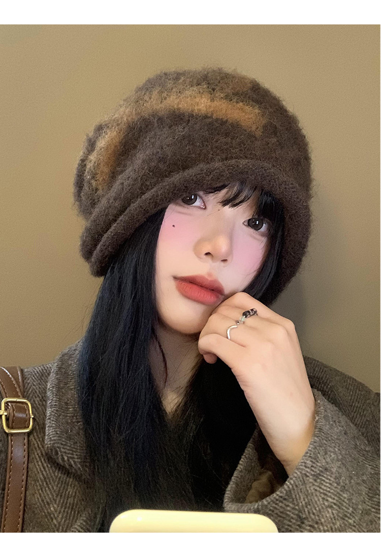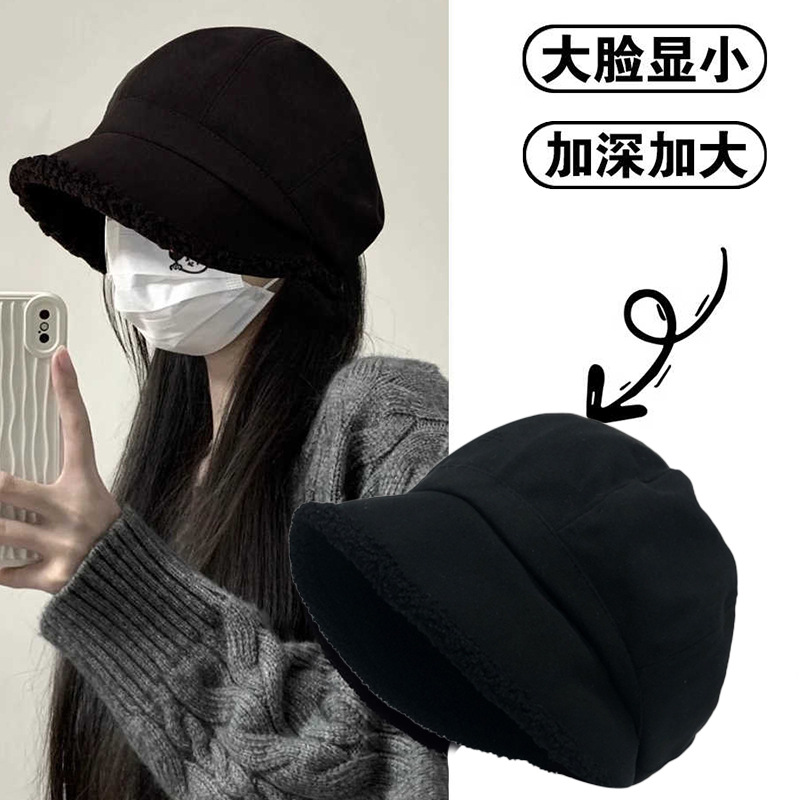 秋冬百搭新款复古加绒渔夫帽日系防风保暖休闲贝雷帽显脸小堆堆帽