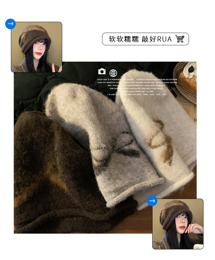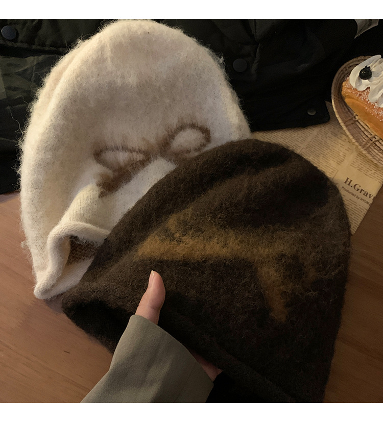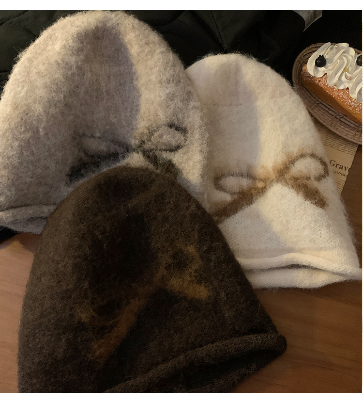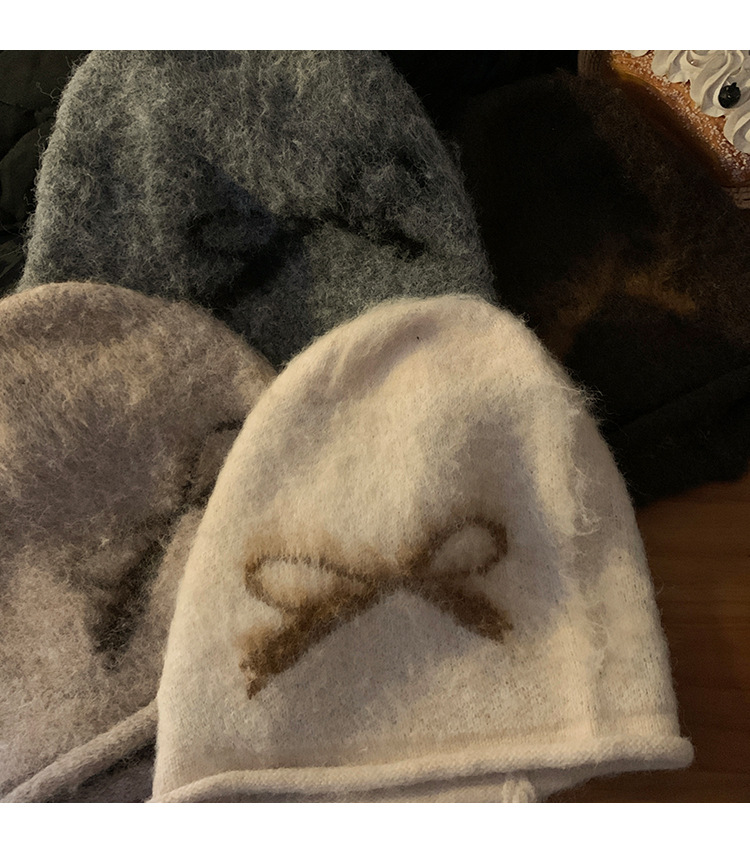 韩系甜美可爱蝴蝶结堆堆帽秋冬慵懒防风保暖冷帽复古大头围套头帽