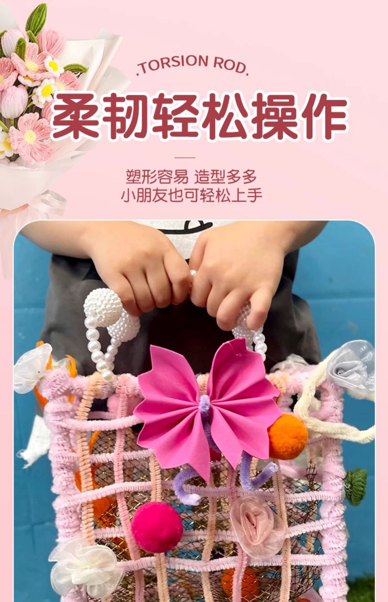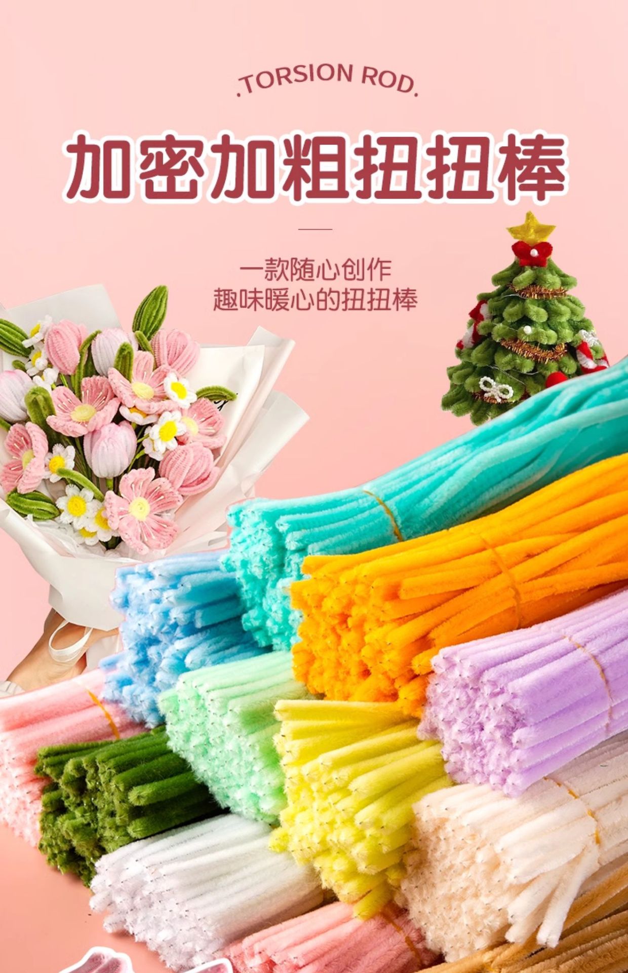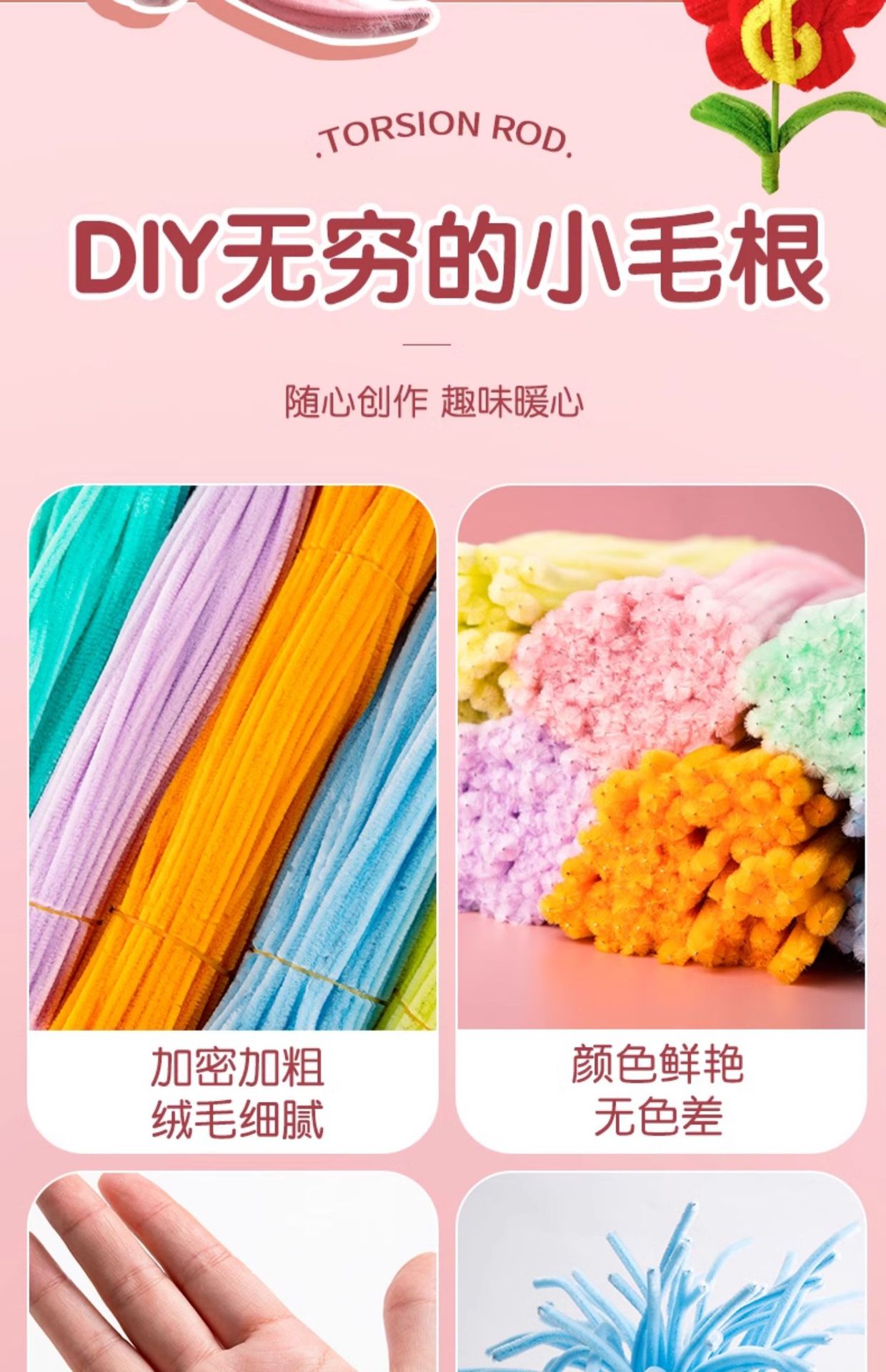 [厂家直销]扭扭棒毛根花束手工diy材料包儿童加密马卡龙毛条批发