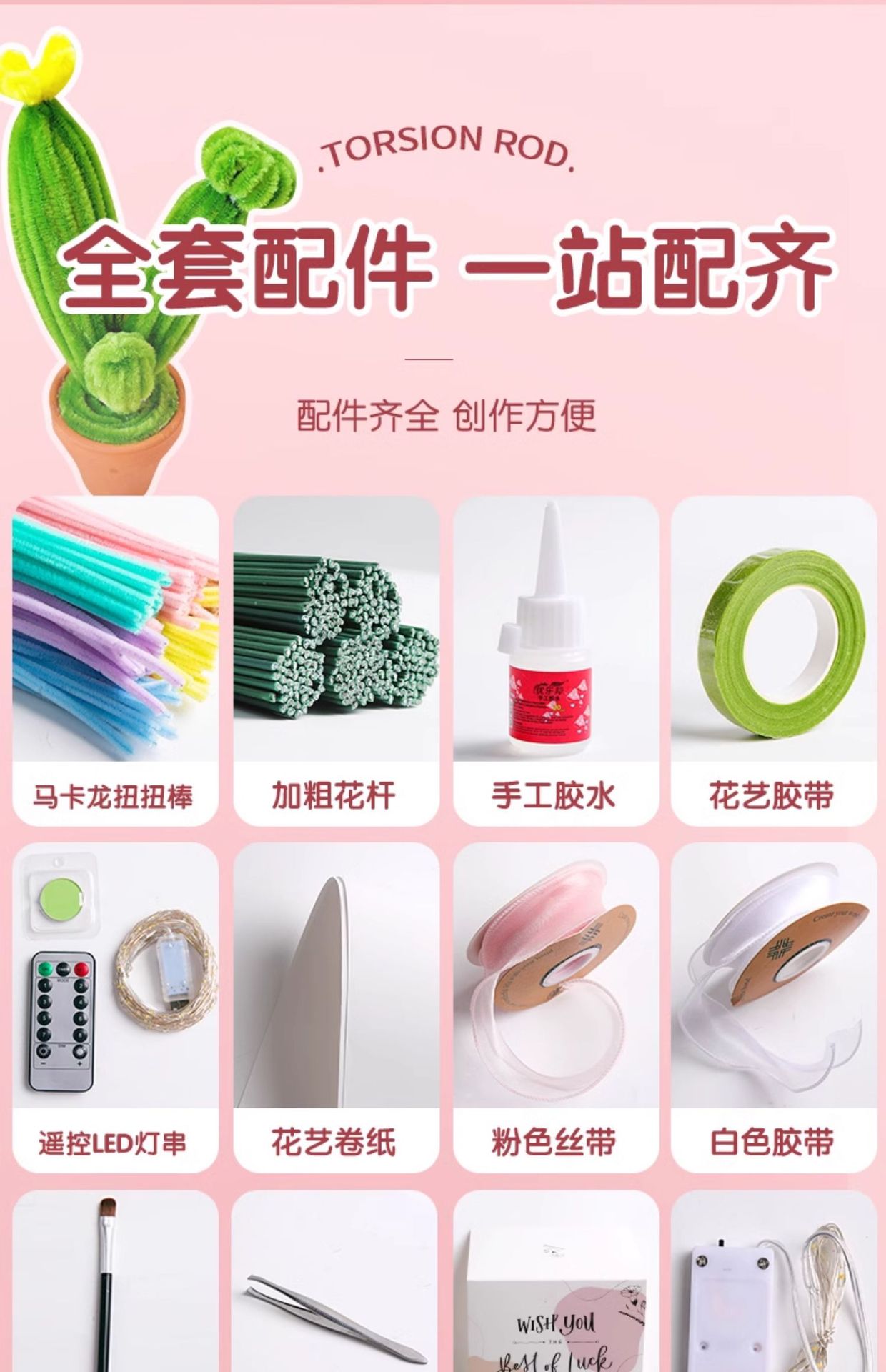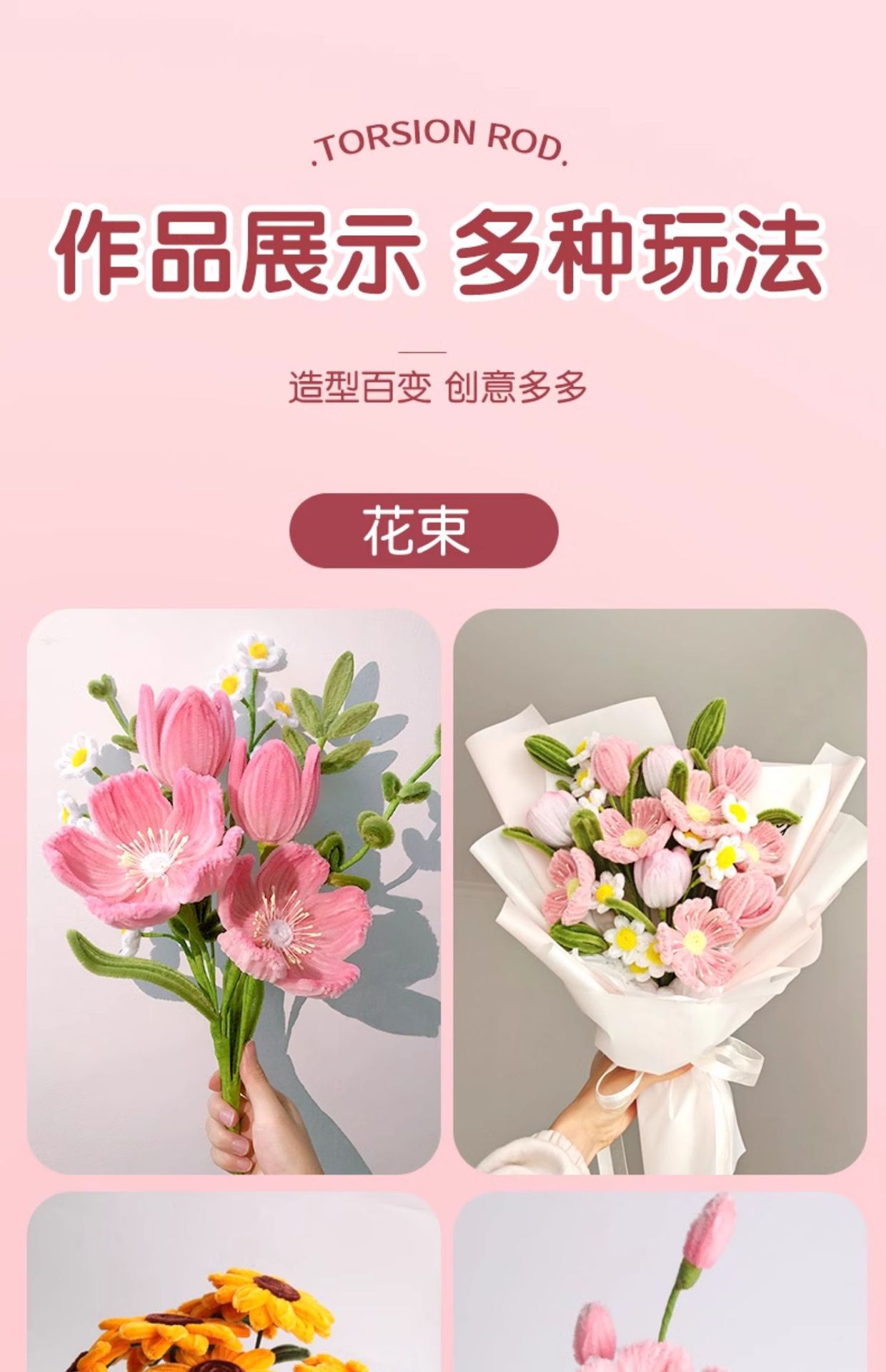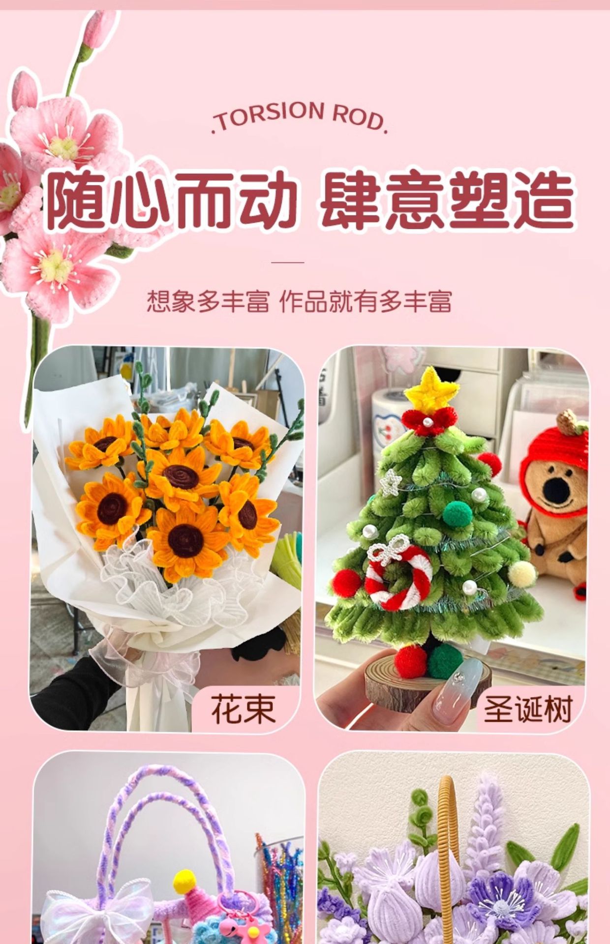 [厂家直销]扭扭棒毛根花束手工diy材料包儿童加密马卡龙毛条批发
