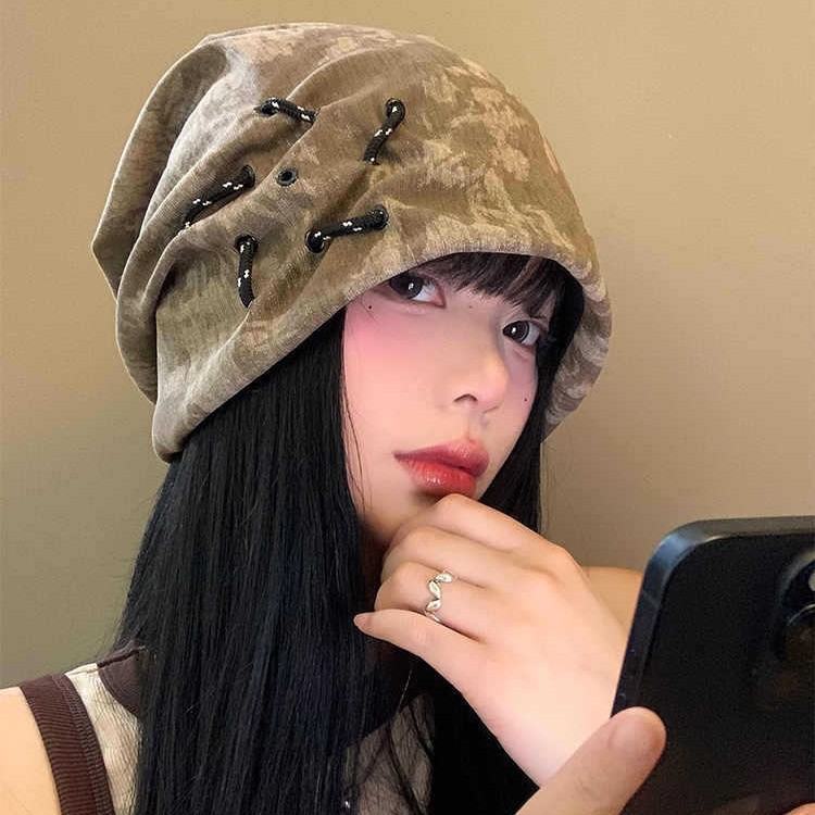 美式复古废土风堆堆帽秋冬百搭显脸小水墨冷帽大头围防风包头帽子