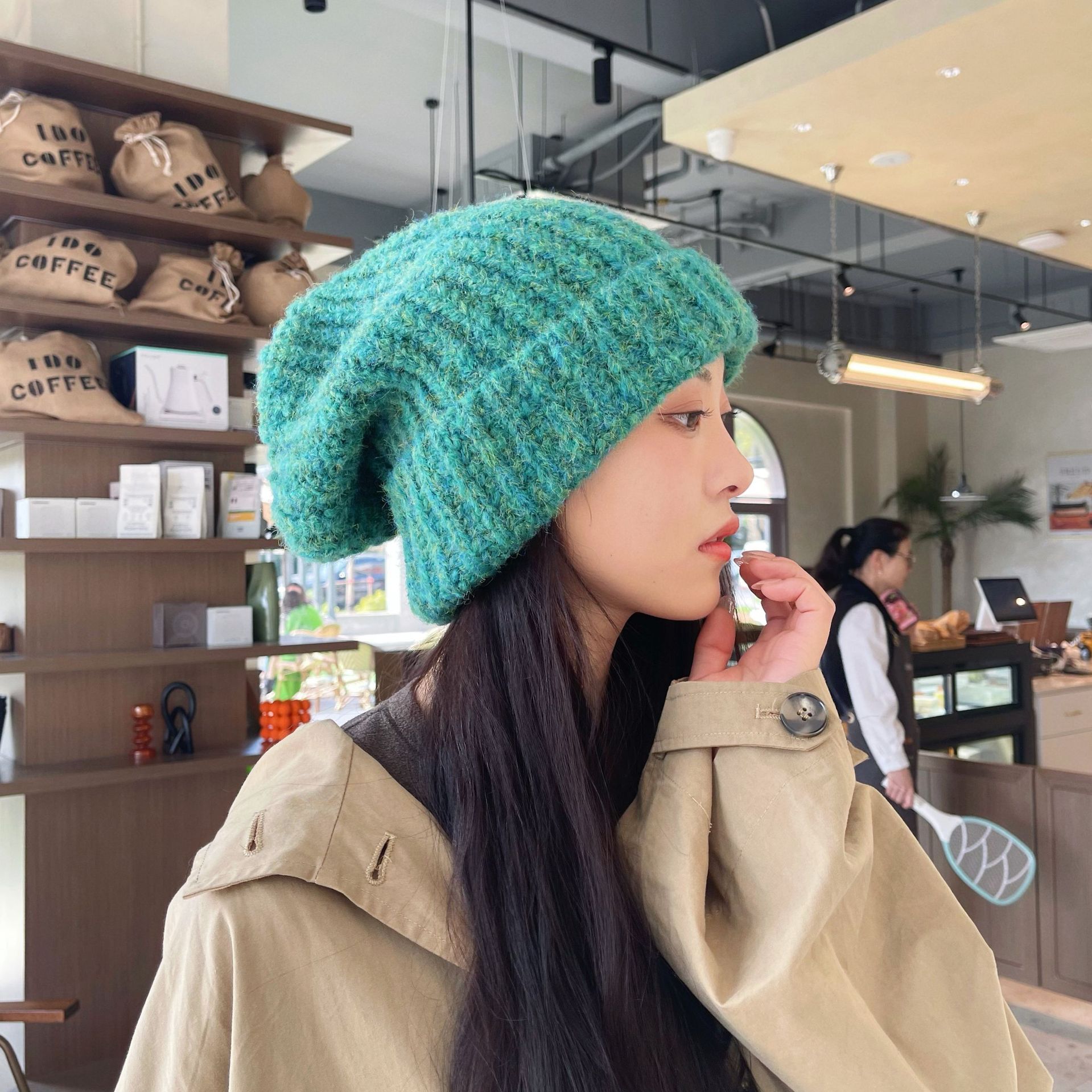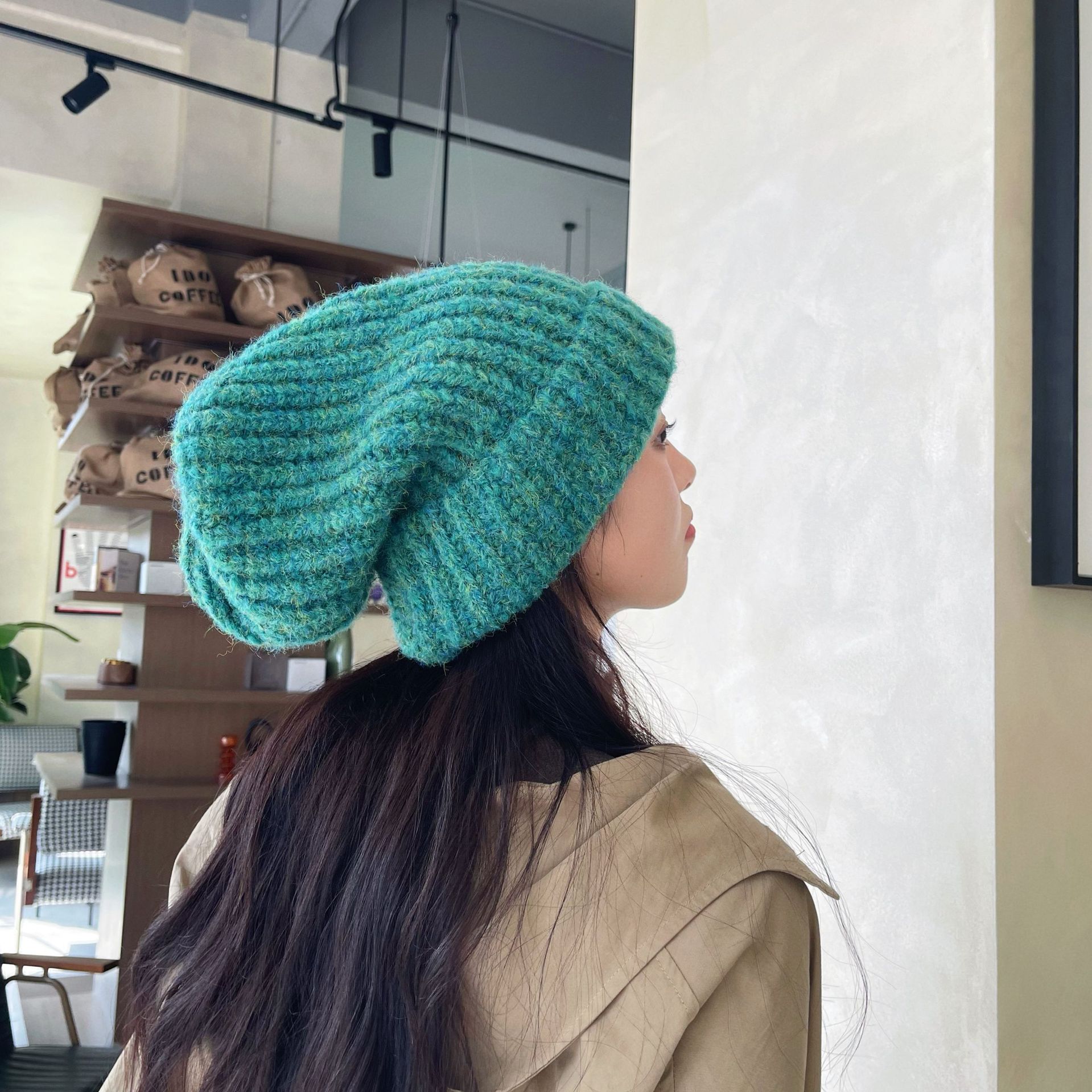 文艺复古加厚大头围毛线帽秋冬防寒保暖护耳包头帽慵懒风堆堆帽韩