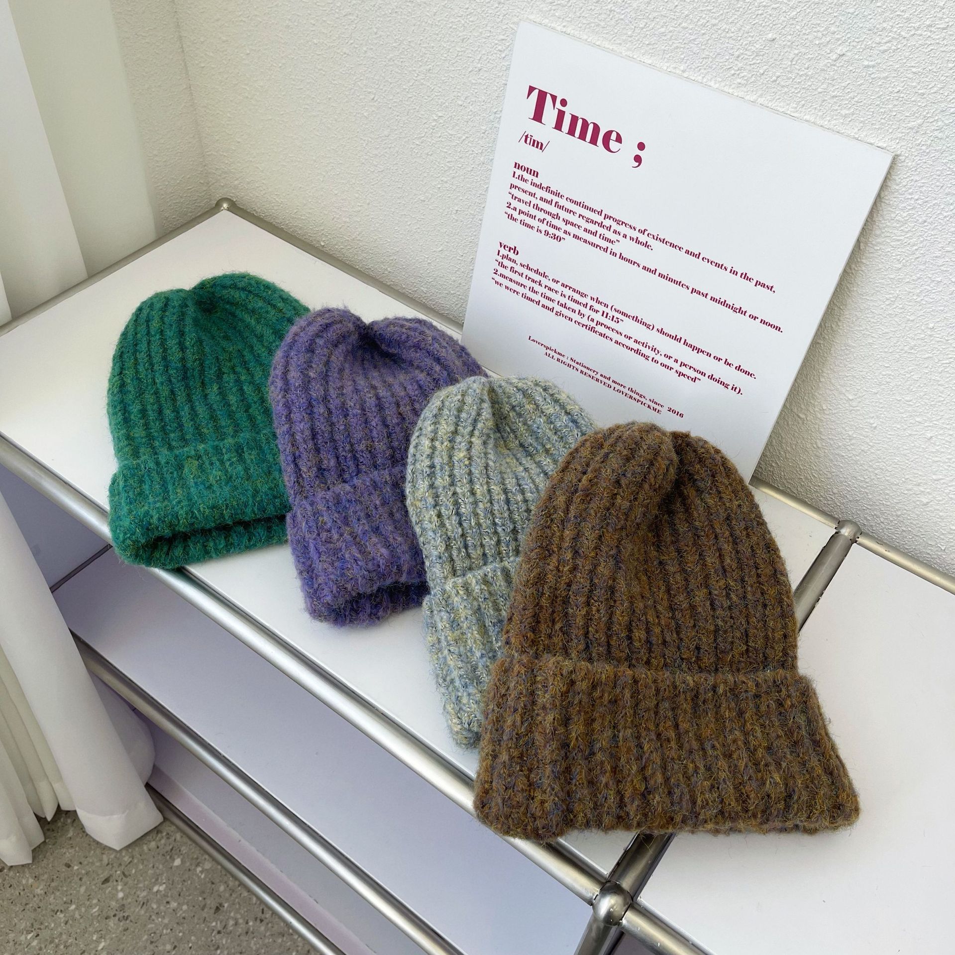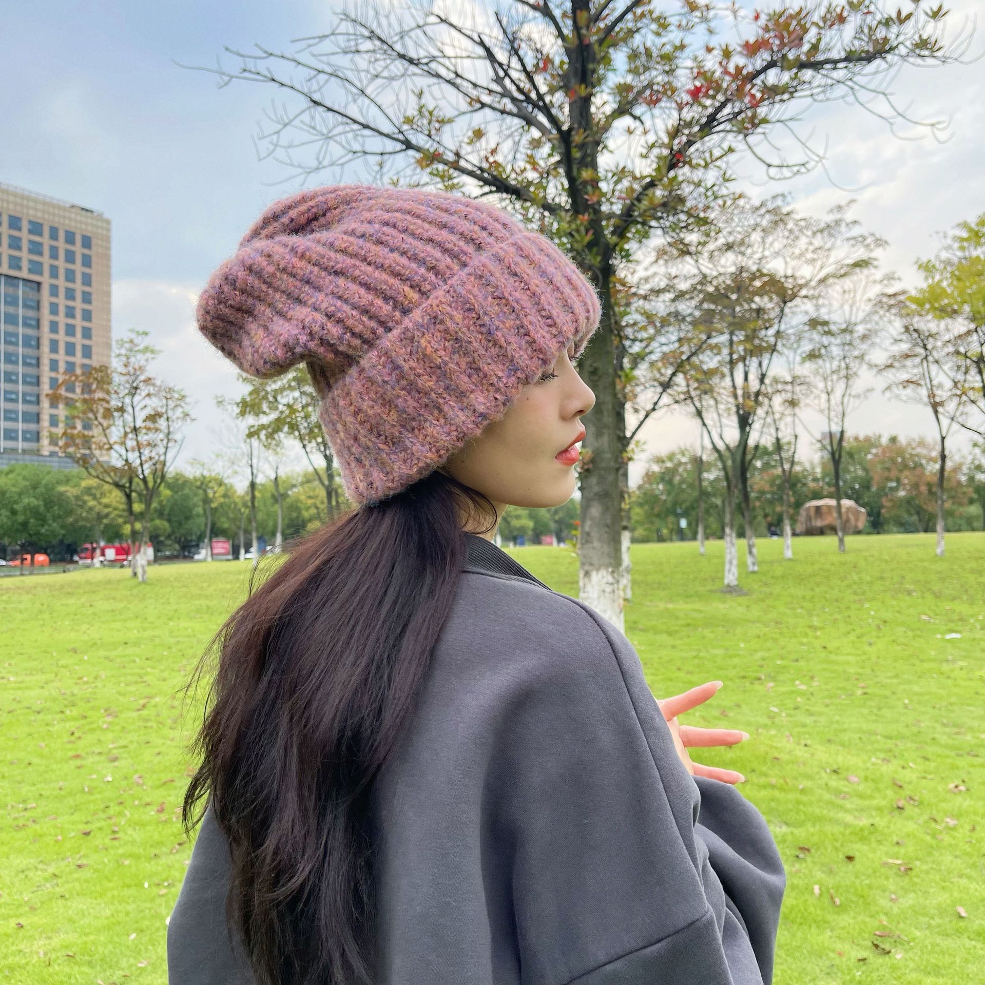 秋冬显脸小包头堆堆帽时尚卷檐针织毛线帽户外出游休闲保暖帽子女