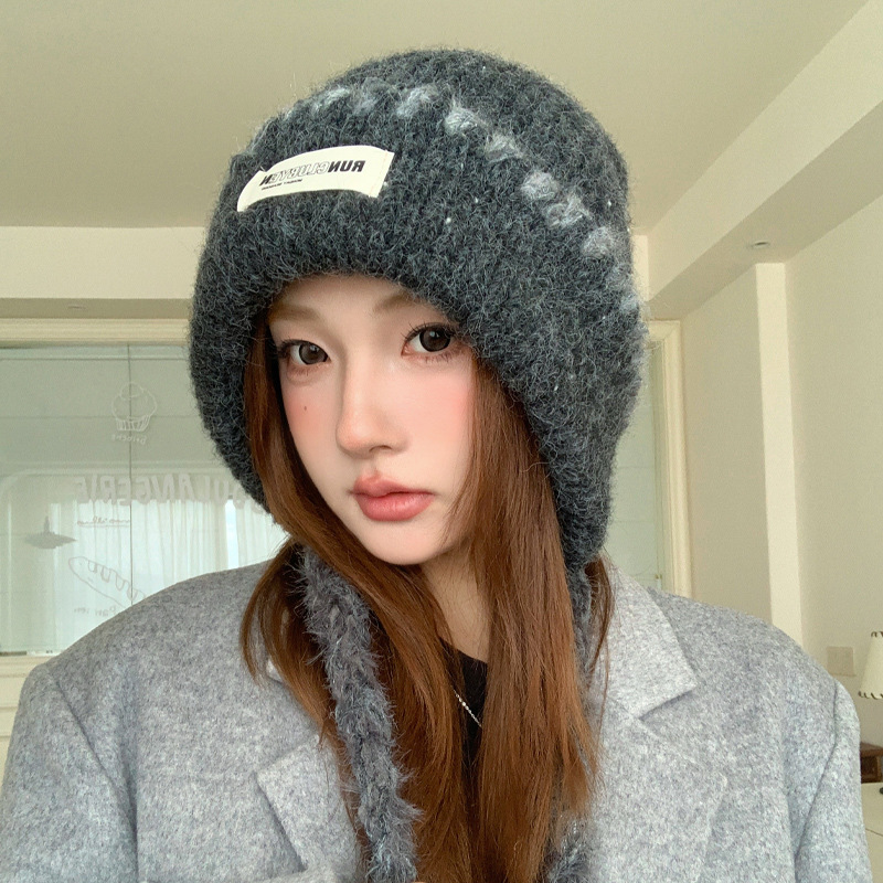 韩系甜美可爱大头围毛线帽秋冬休闲百搭包头帽防风护耳保暖针织帽