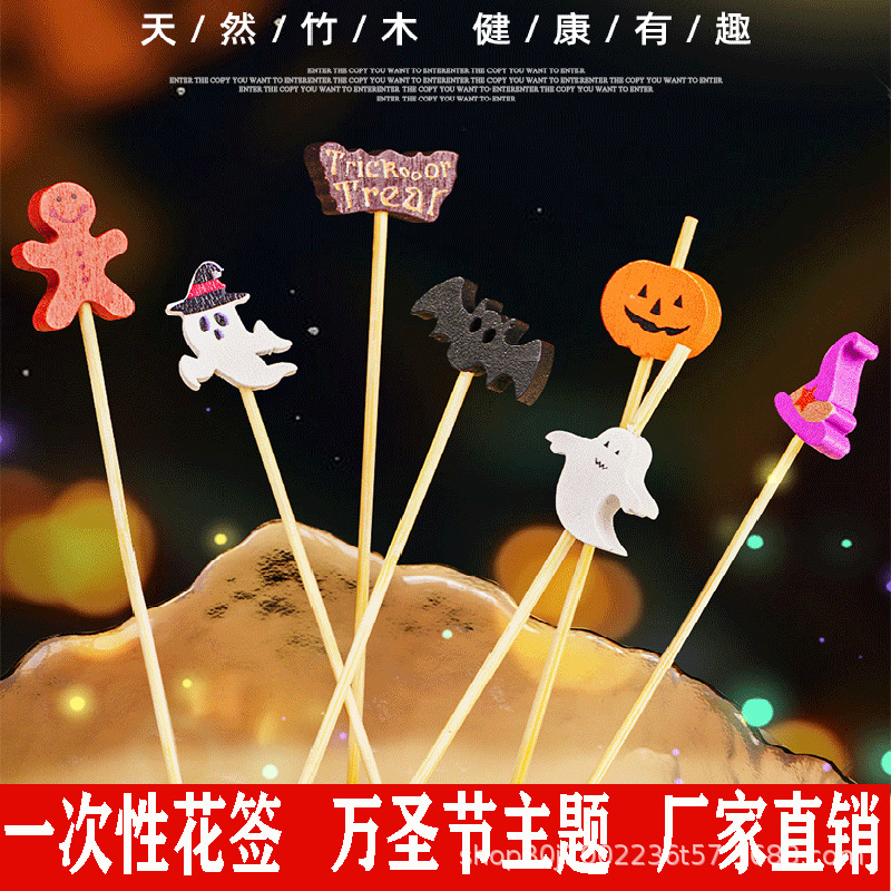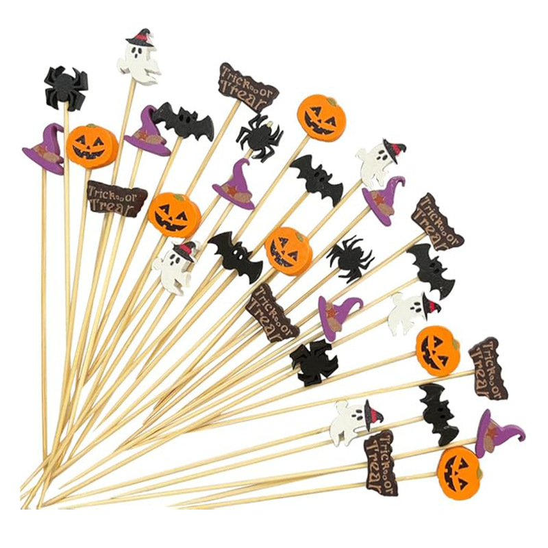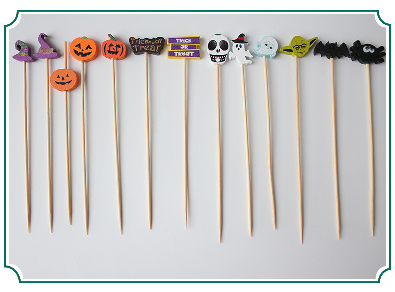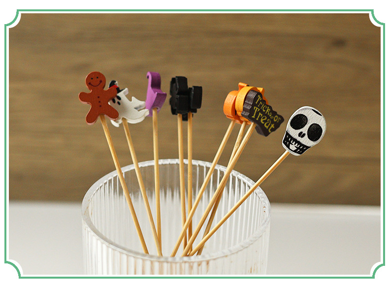 ハロウィン ハロウィン フルーツピック 100本/パック 使い捨て ランダム パンプキン ゴースト カクテルピック 竹ピック
