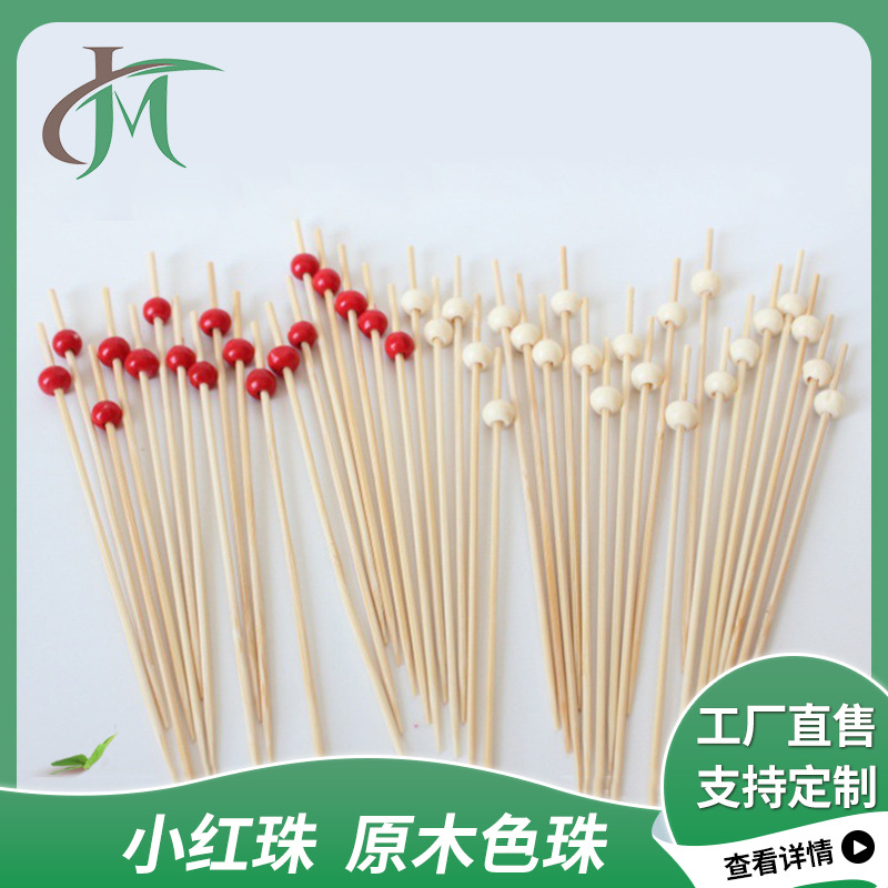 ダブルレッドビーズスティック100本/パック、ダブルビーズスティック、フルーツ竹スティック、アートケーキスティック、カクテルスティック、環境に優しい