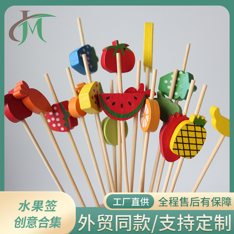使い捨てフルーツピックデザイン 100 個/パック竹クリップ鉄砲串カクテルピックバーベキューピック包装変更非在庫