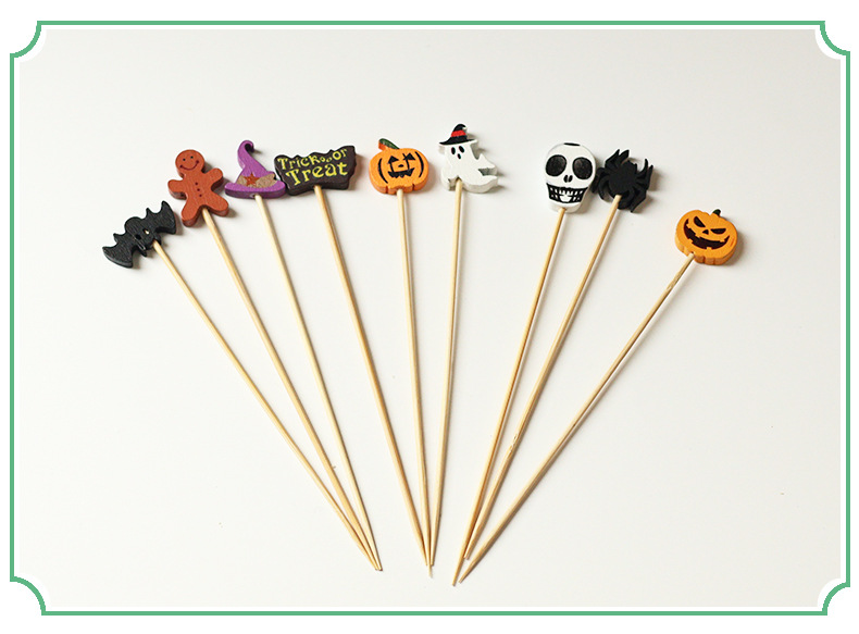 跨境Halloween万圣节装饰一次性牙签水果签南瓜幽灵女巫帽汉堡签