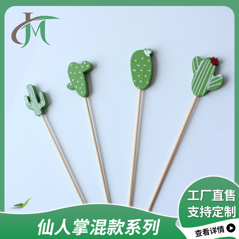 混金サボテン果物サイン100本/バッグ特色菓子サイン甜品フォークins果物竹サインアマゾン