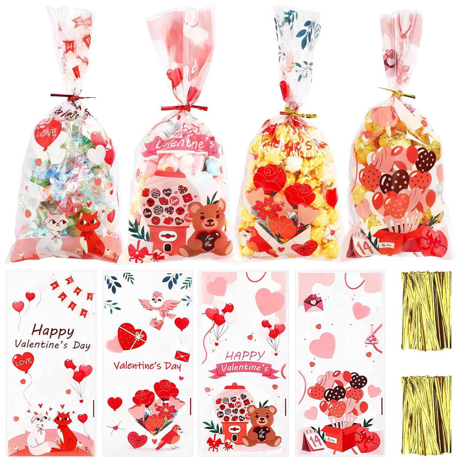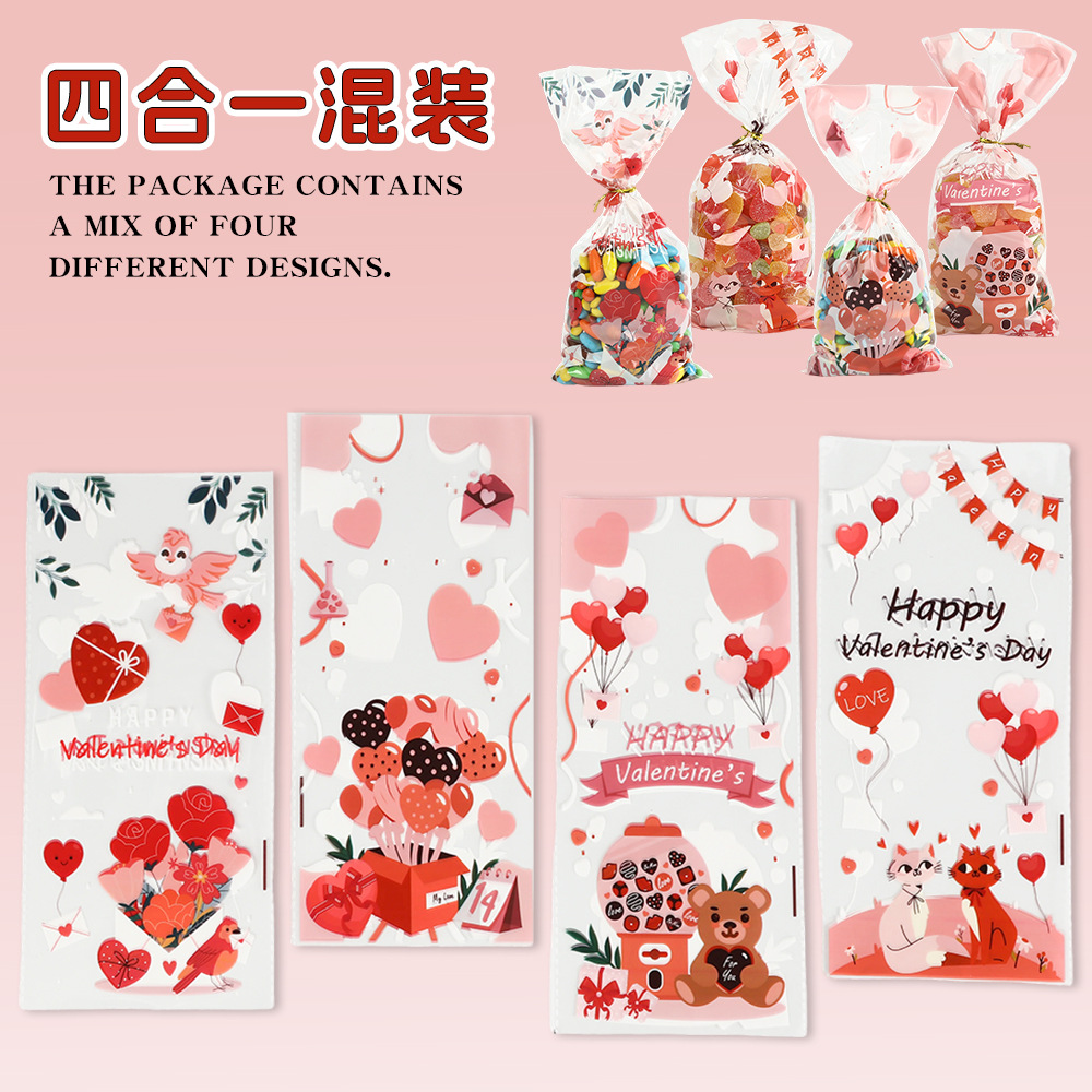 情人节主题透明礼品袋爱心小熊花朵图案糖果礼物包装袋OPP平口袋