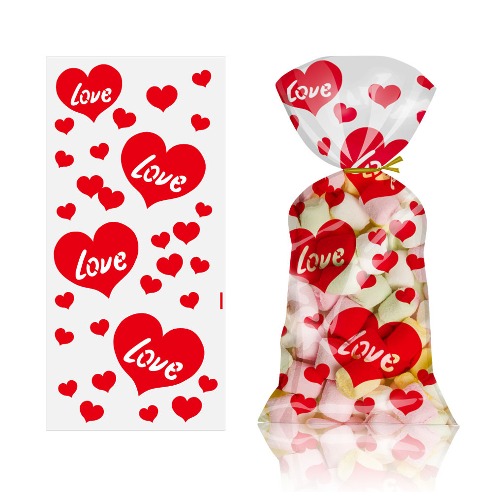 爱心主题透明糖果包装袋情人节糖果饼干包装OPP平口袋塑料薄膜袋