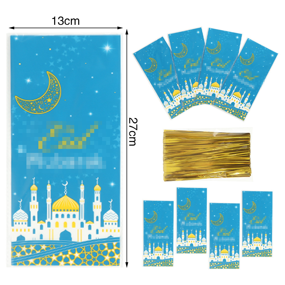 国境を越えたお祝いパーティーのギフトバッグ城月パターンカラープリントプラスチックフィルムバッグキャンディスナックフラットバッグ