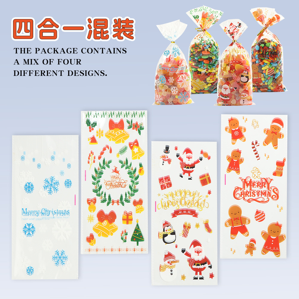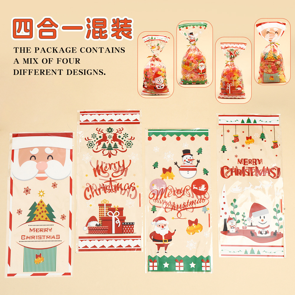 クロスボーダー漫画クリスマス要素カラー印刷キャンディバッグ厚く耐摩耗性透明 opp ビニール袋フラット口ギフトバッグ
