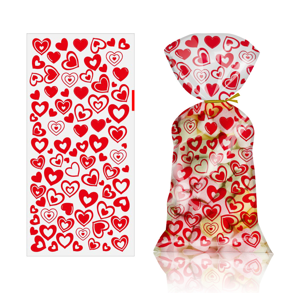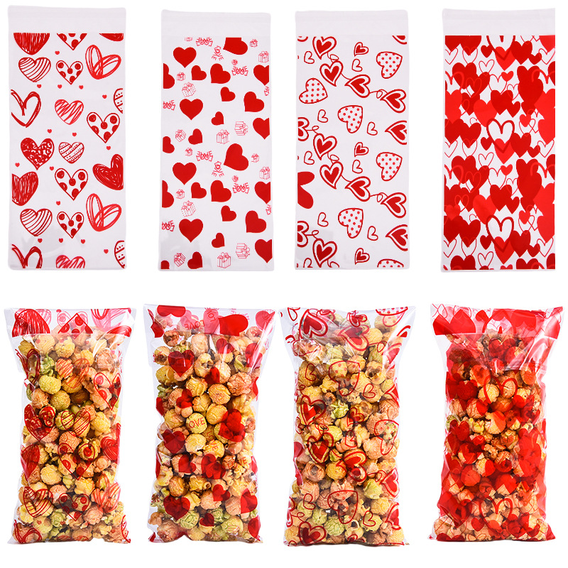跨境情人节糖果礼品袋爱心礼品袋派对零食饼干opp自粘袋厂家批发
