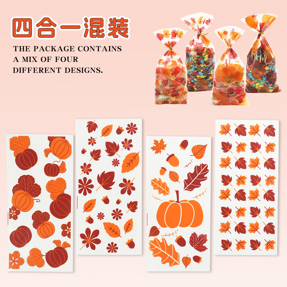 カエデの葉カボチャカラープリントビスケットキャンディバッグ増粘OPPプラスチックフィルムバッグ感謝祭パーティーユニバーサルギフトバッグ