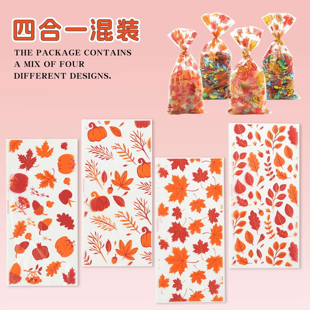 クロスボーダー感謝祭キャンディ包装袋カエデの葉カボチャ祭り opp フラットポケット 5 シルクカラー印刷ギフトプラスチックフィルム袋