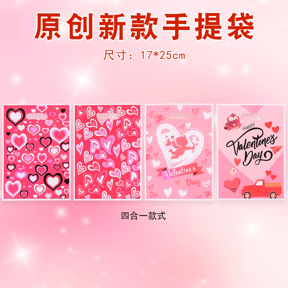 跨境新品情人节四指袋珠光膜桃心印花手提袋派对礼品袋包装糖果袋