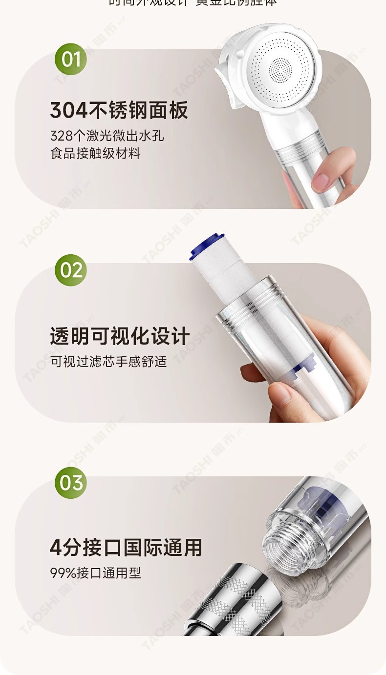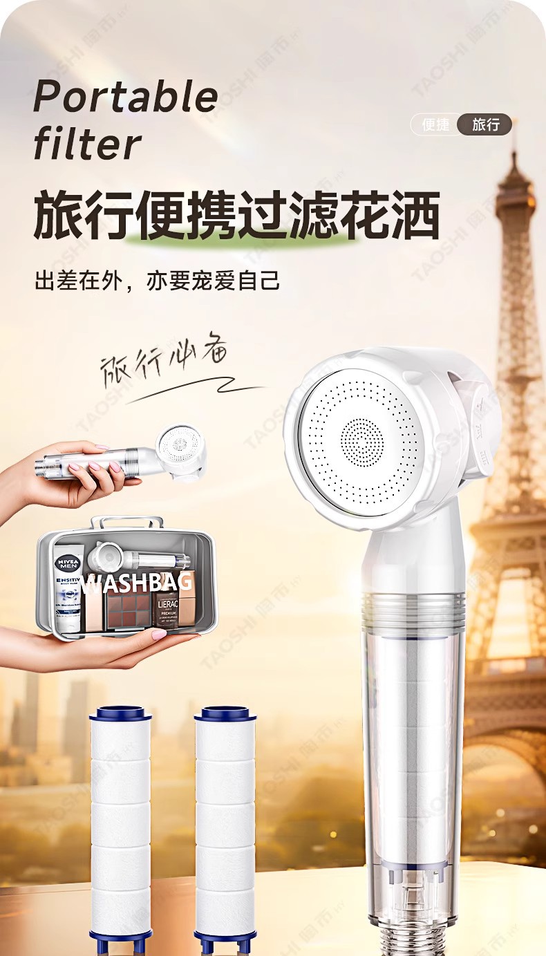 规格 (水晶白)除氯美肤花洒【国内国外通用】,雅黑色迷你增压过滤花洒【家庭酒店双用】,透明色迷你增压过滤花洒【家庭酒店双用】,【白色旅行套装1】迷你过滤花洒+支架,【白色旅行套装2】迷你过滤花洒+1.5米软管,【白色旅行套装3】迷你过滤花洒+支架+1.5米软管,【黑色旅行套装1】迷你过滤花洒+支架,【黑色旅行套装2】迷你过滤花洒+1.5米软管,【黑色旅行套装3】迷你过滤花洒+支架+1.5米软管,【透明旅行套装1】迷你过滤花洒+支架,【透明旅行套装2】迷你过滤花洒+1.5米软管,【透明旅行套装3】迷你过滤花洒+支架+1.5米软管,滤芯(5个装)