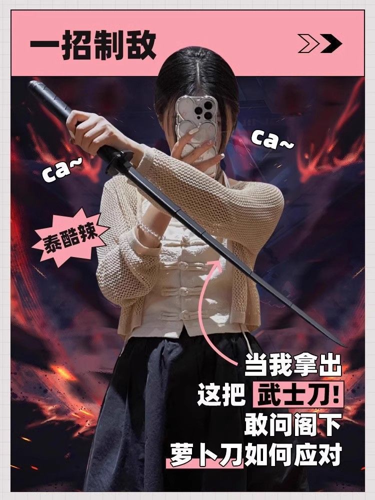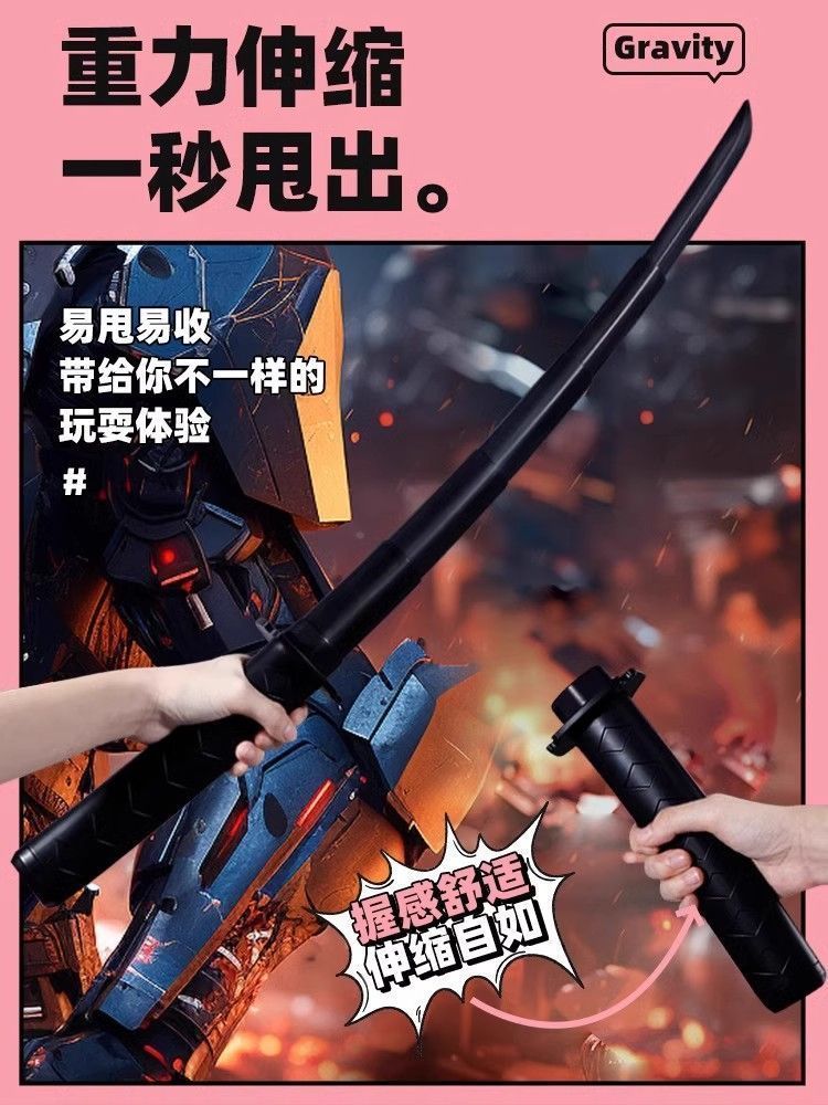 3d武士刀伸缩剑加长版中国风新款网红萝卜伸缩刀伸缩武士刃玩具