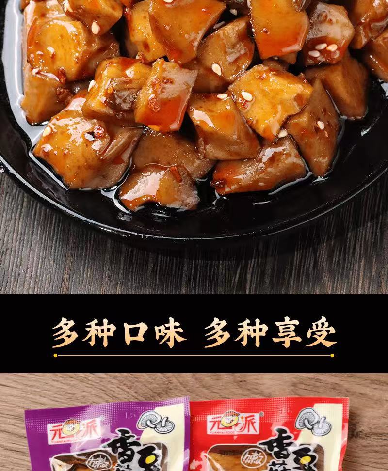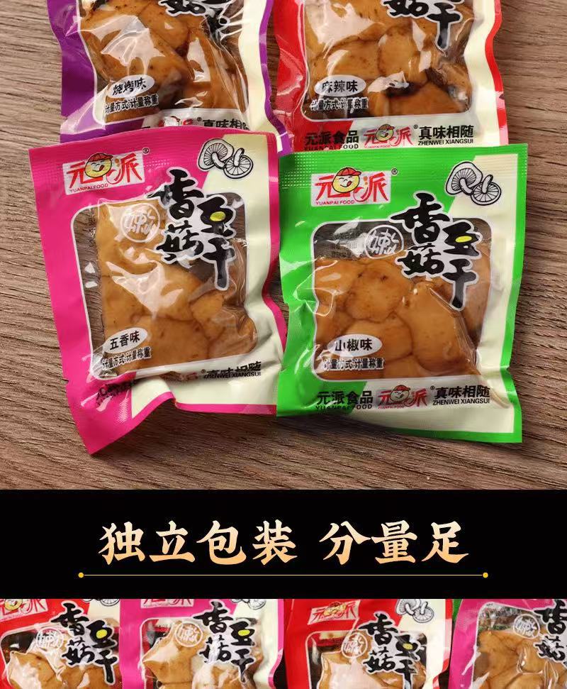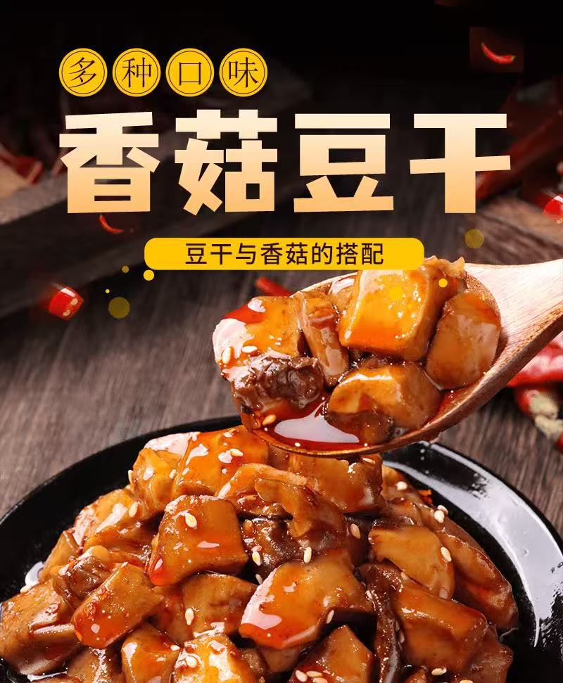 包装规格 香菇豆干【麻辣味】1斤,香菇豆干【山椒味】1斤,香菇豆干【烧烤味】1斤,香菇豆干【五香味】1斤