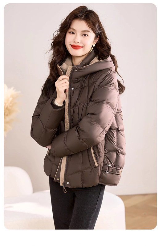 ダウンコットンジャケットレディースショート2025新韓国スタイルフード付き厚手の綿ジャケット小柄な人向け冬の綿ジャケットトレンディ
