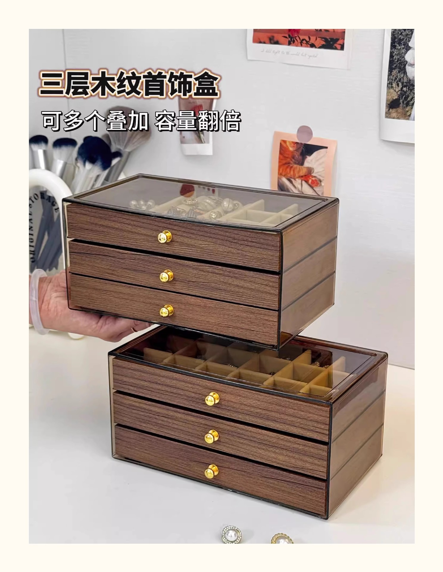 胡桃木纹首饰盒项链耳环整理饰品盒高档新款三层五层饰品收纳盒
