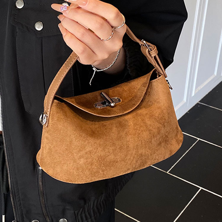 麂皮绒包包女款2025新款时尚百搭高级感单肩包复古通勤斜挎小方包