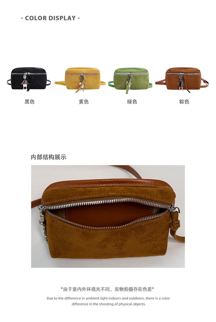 磨砂牛皮手机包小挎包女高级感小众设计饭盒包复古麂皮绒斜挎小包