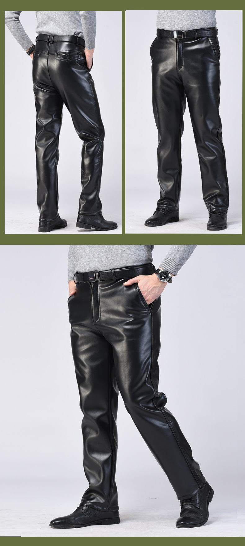男性の革のズボンとベルベットは冬の高腰防寒防風防水の出前で中高年保温皮のズボンを厚くした