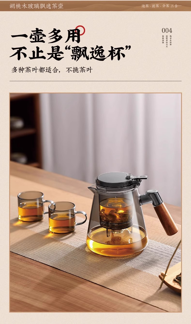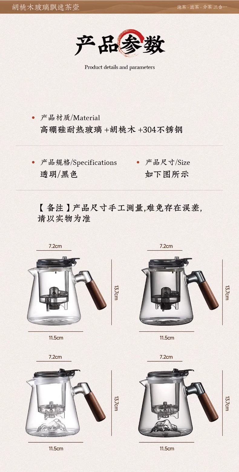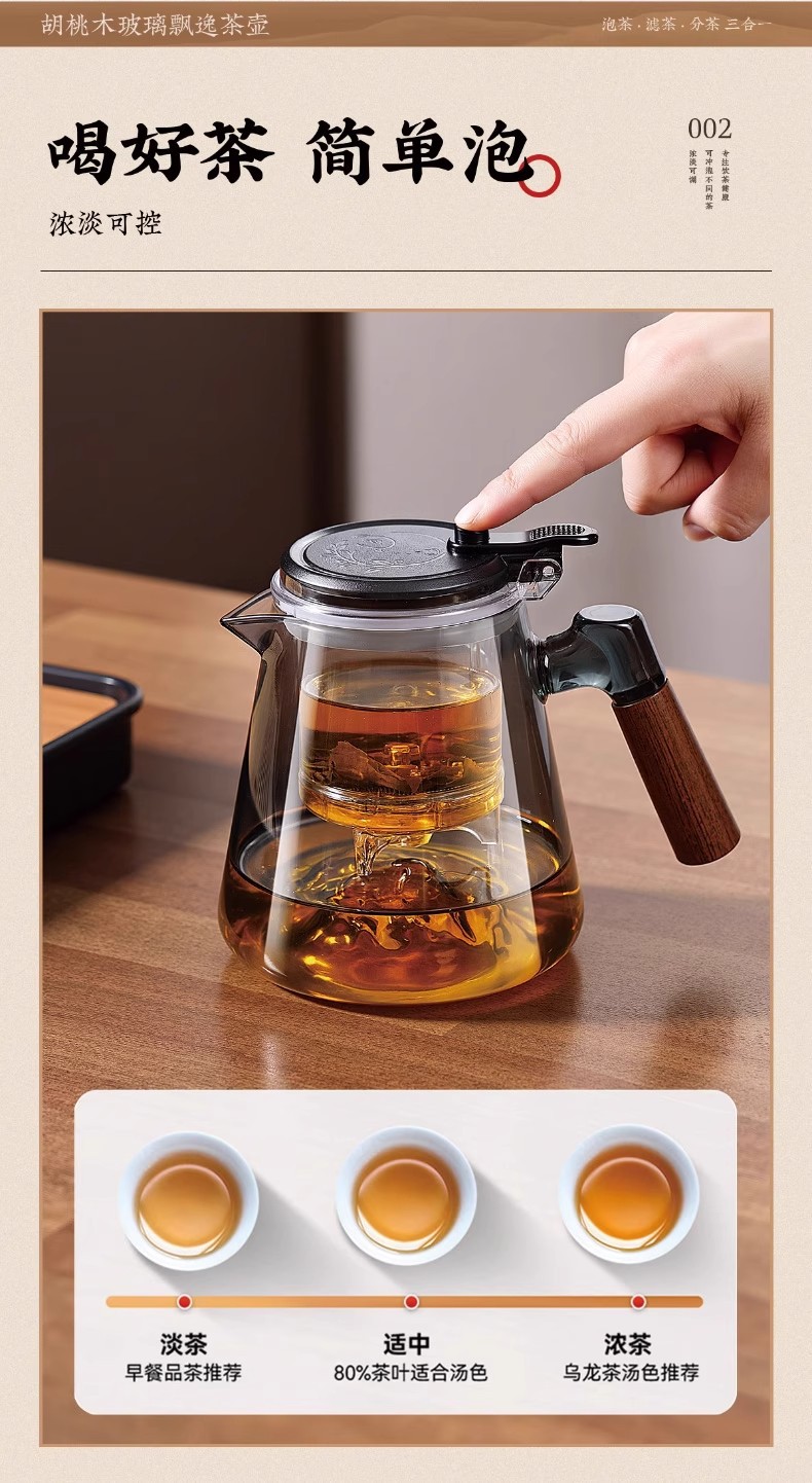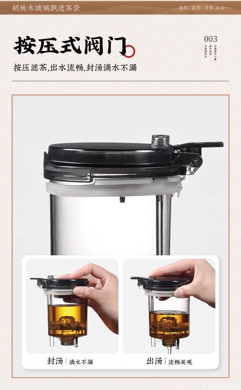 ティーライナークルミエレガントなティーポット新しいワンクリック茶フィルター分離家庭用ガラスティーセット