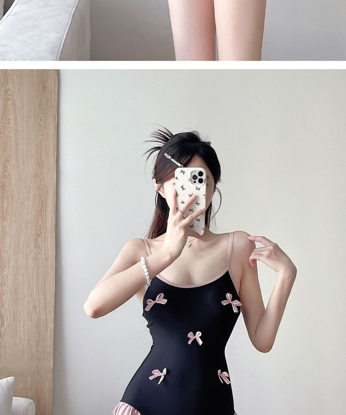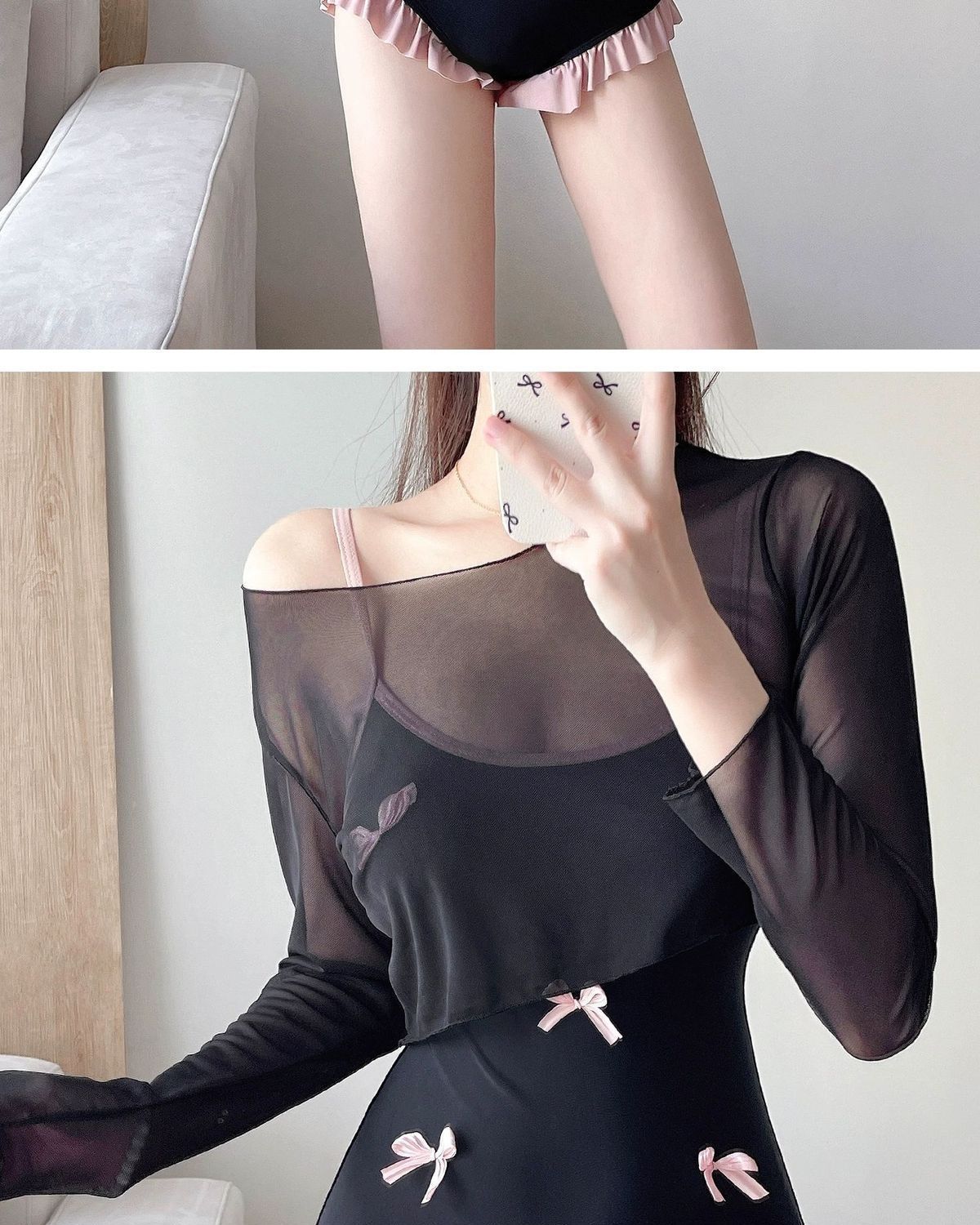 【夢幻花叢】女性2024起爆高級感長袖連体がお腹を隠して痩せている温泉水着2点セット