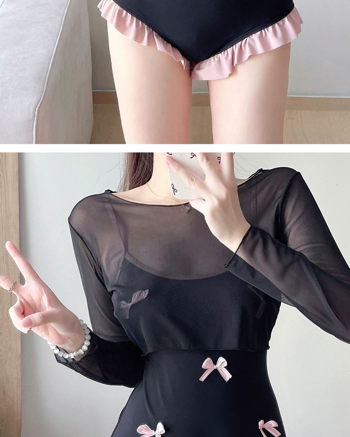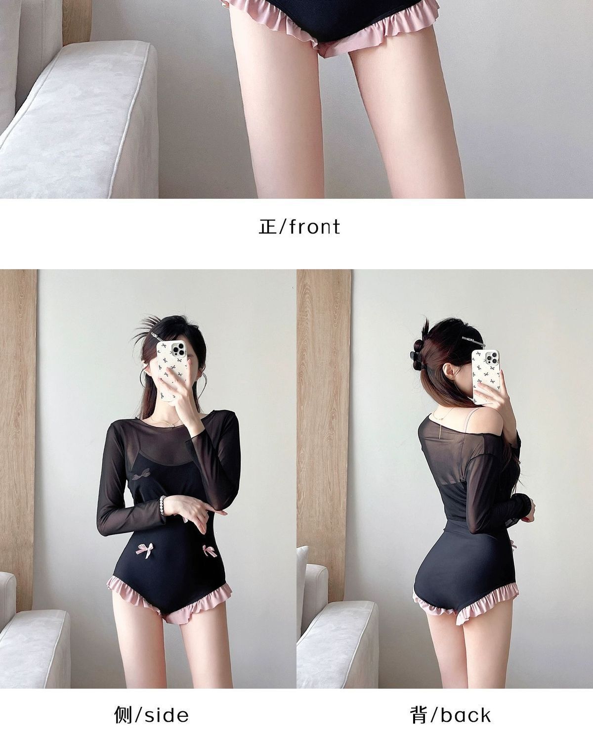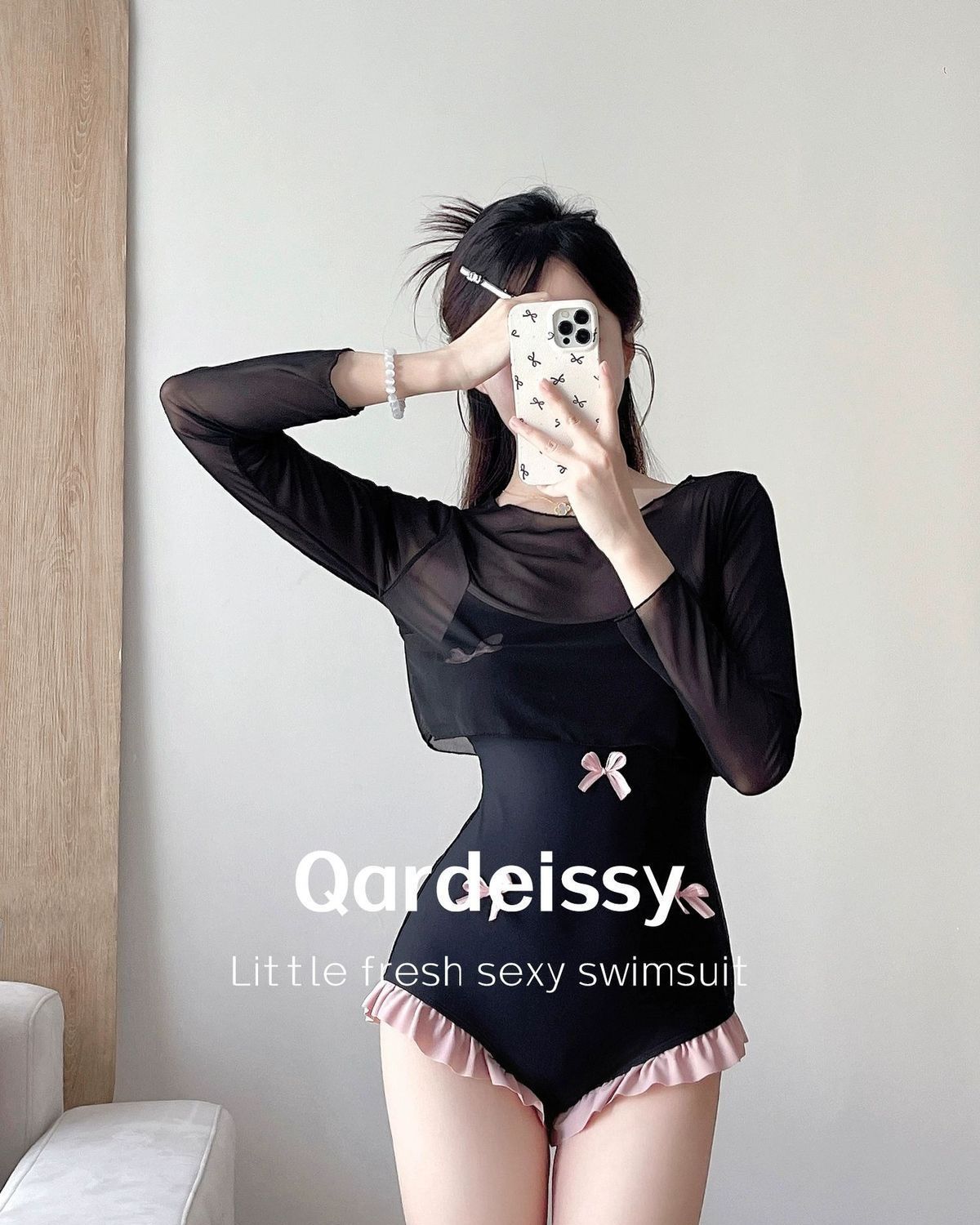 Qardeisy2025新款长袖泳衣甜美少女保守显瘦高级感度假温泉泳装