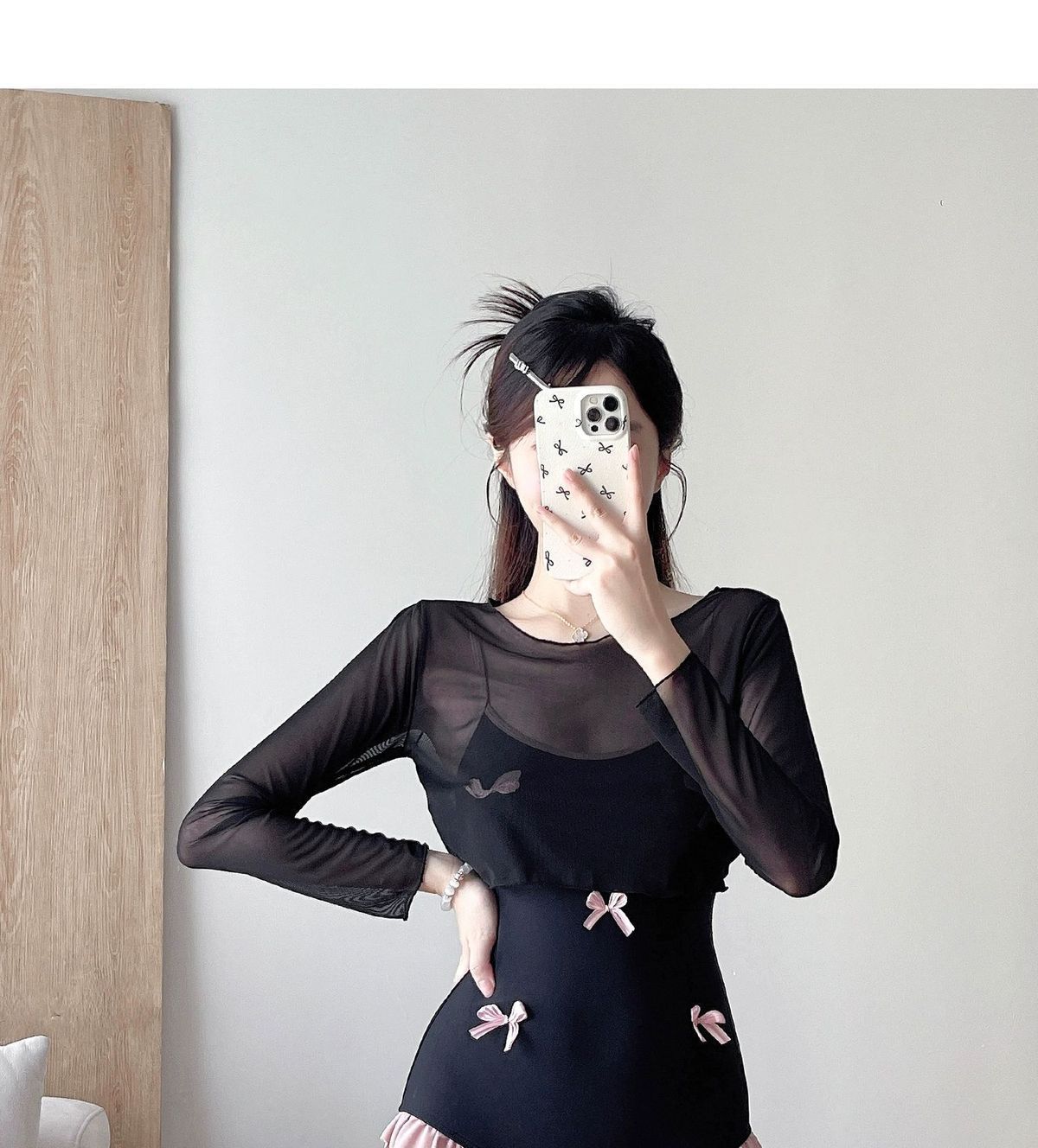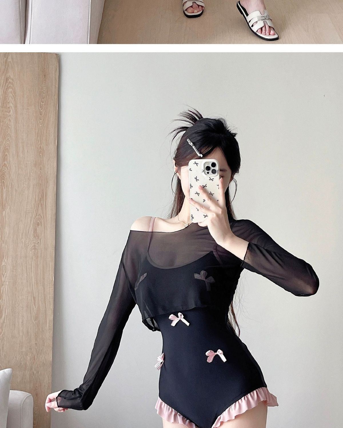 新商品の純欲風立体蝶装飾ワンピース水着女性長袖ブラウス保守的な肉カバー痩せ小胸夏