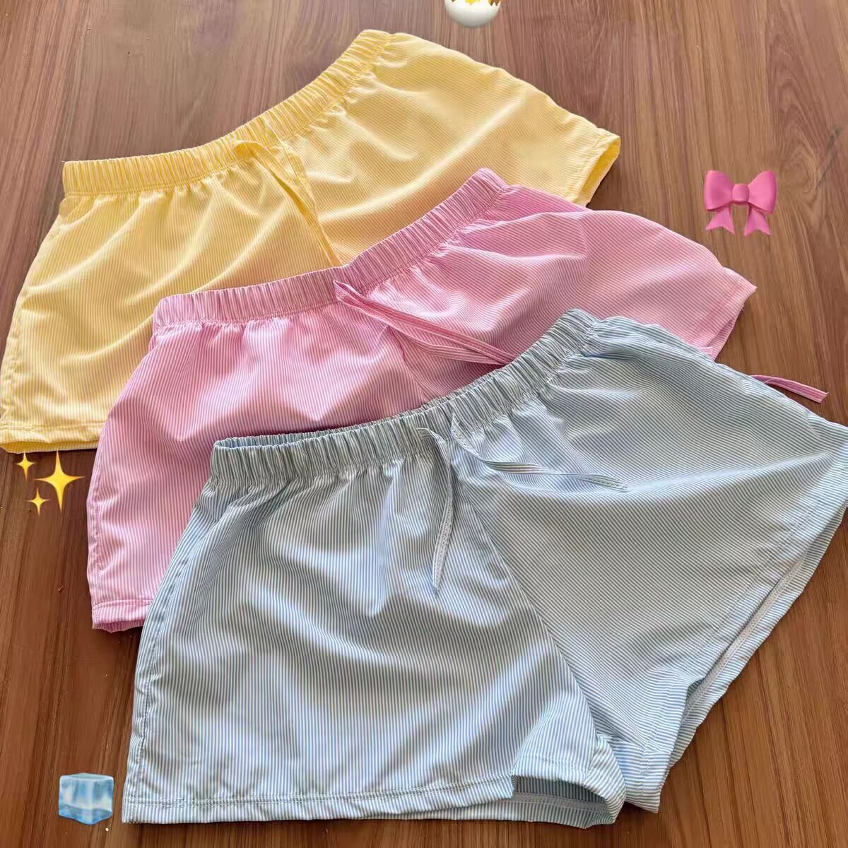 [Sea Sparkle] ビーチショーツ 韓国インストライプ 伸縮性巾着 カジュアルショーツ 速乾ビーチショーツ